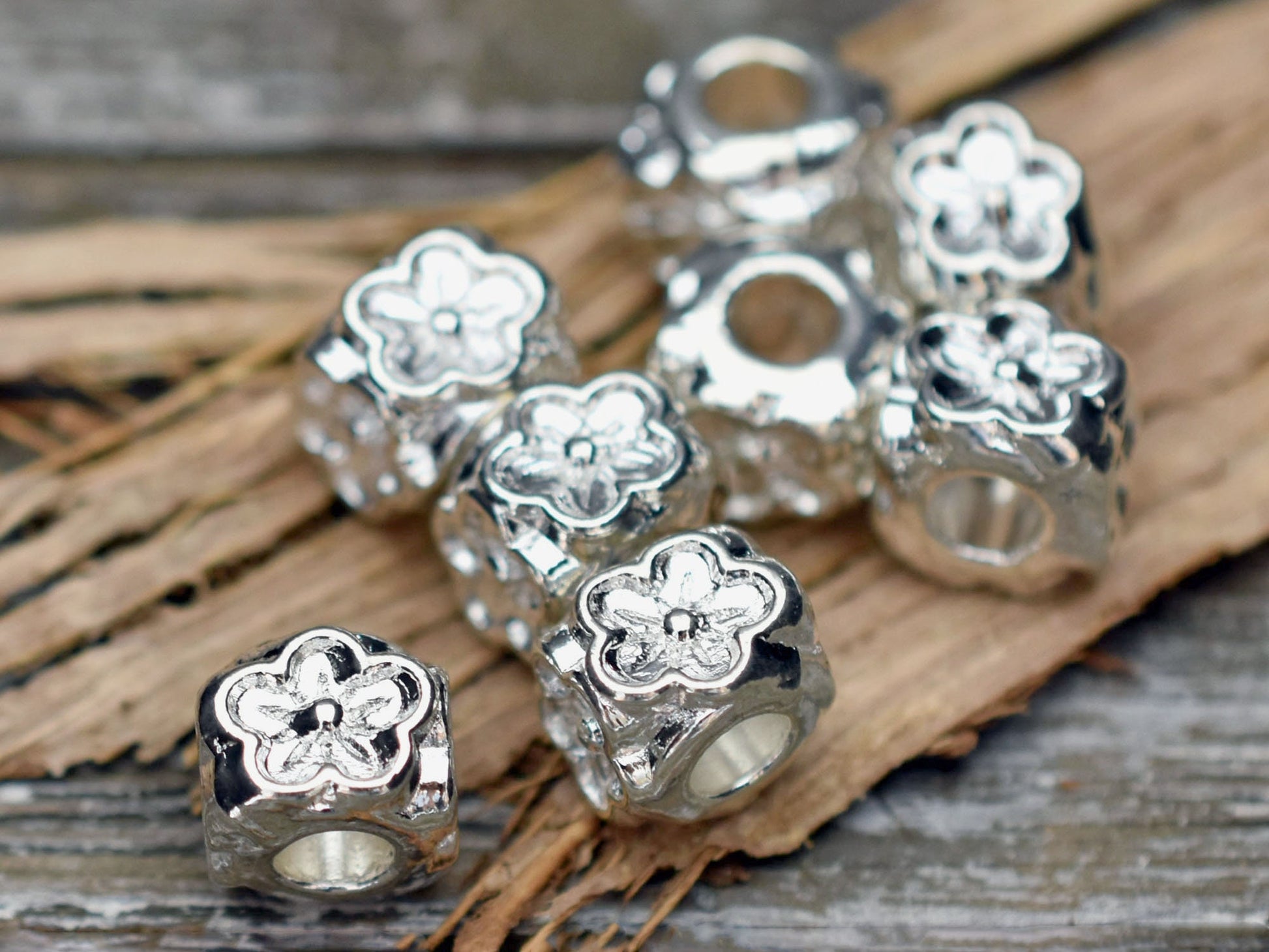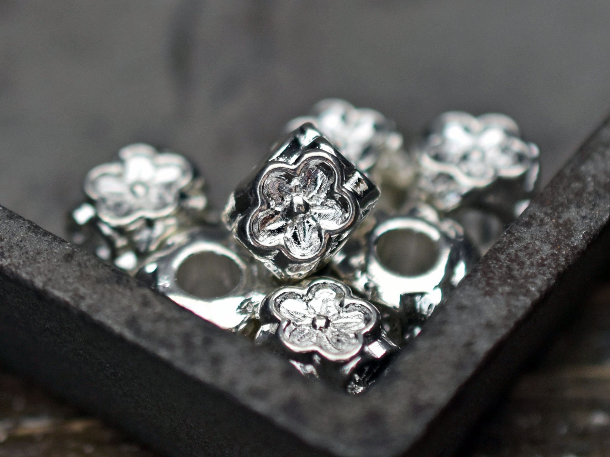 *10* 8x7mm Platinum Silver Large Hole Floral Cube Beads