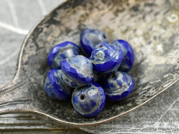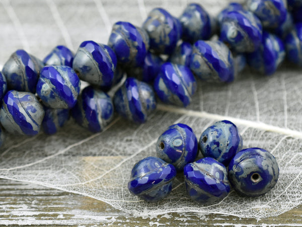 *10* 9x11mm Opaque Cobalt Travertine Saturn Beads