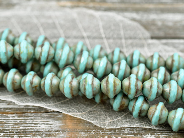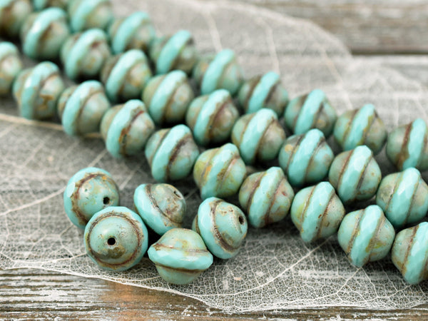 *15* 9x11mm Opaque Turquoise Picasso Saturn Beads