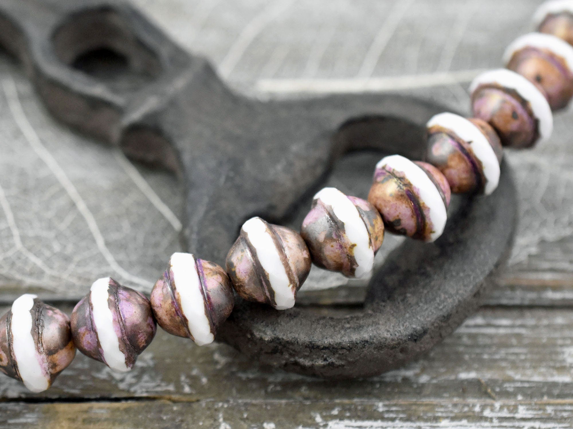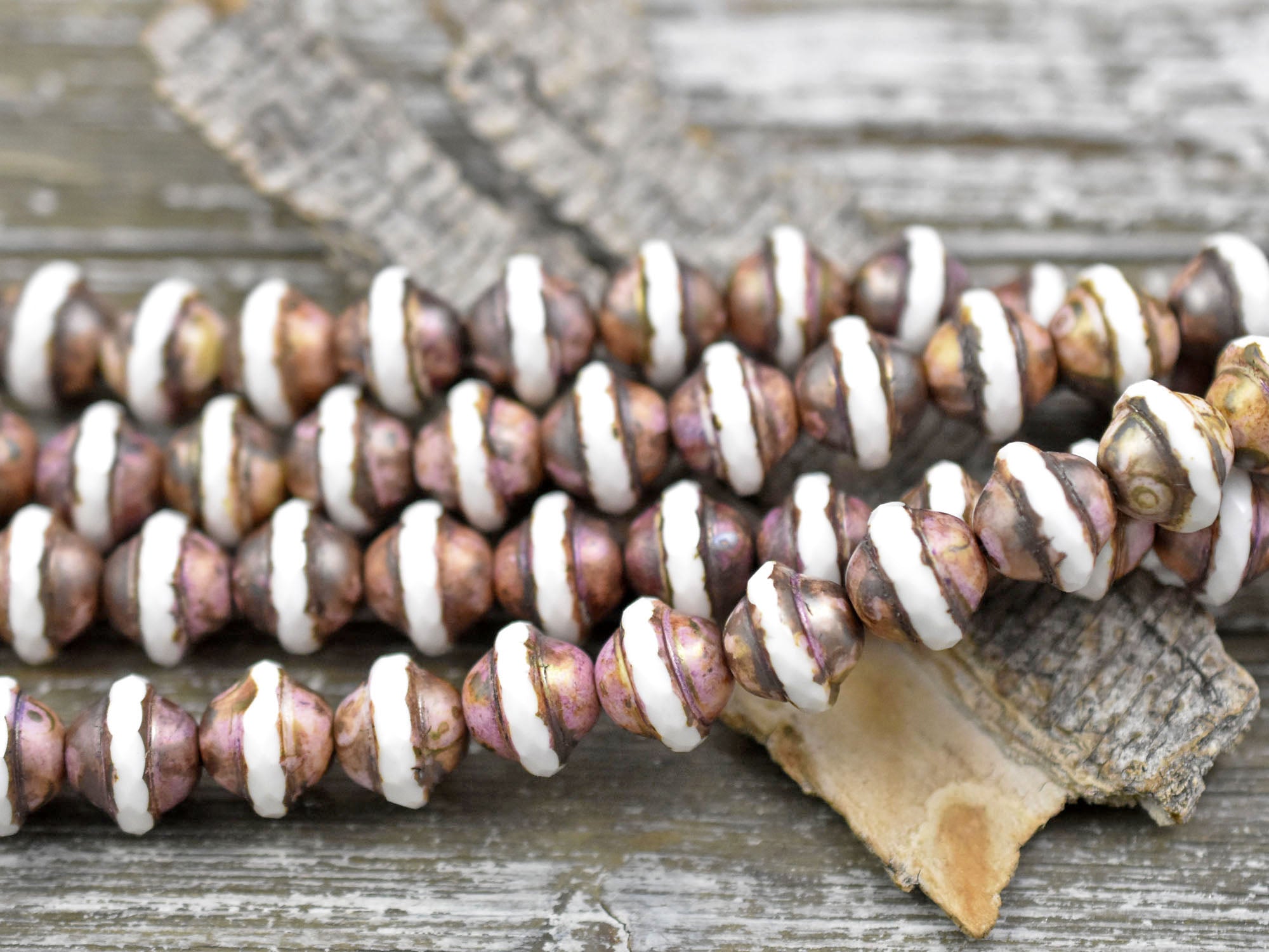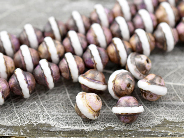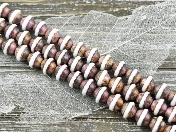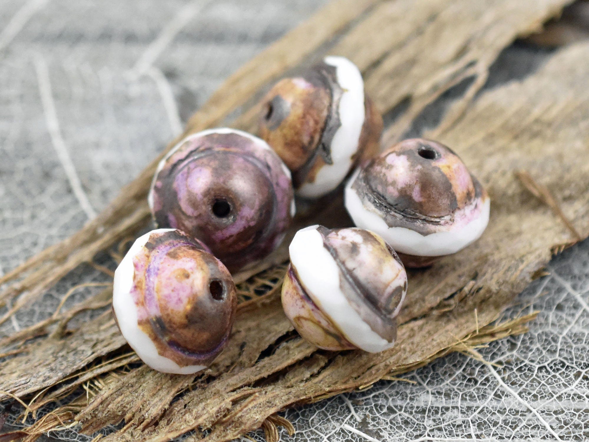 *10* 8x10mm Opaque White w/ Bronzed Pink Picasso Saturn Beads