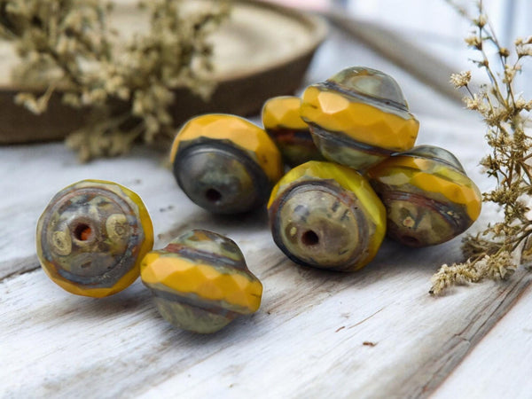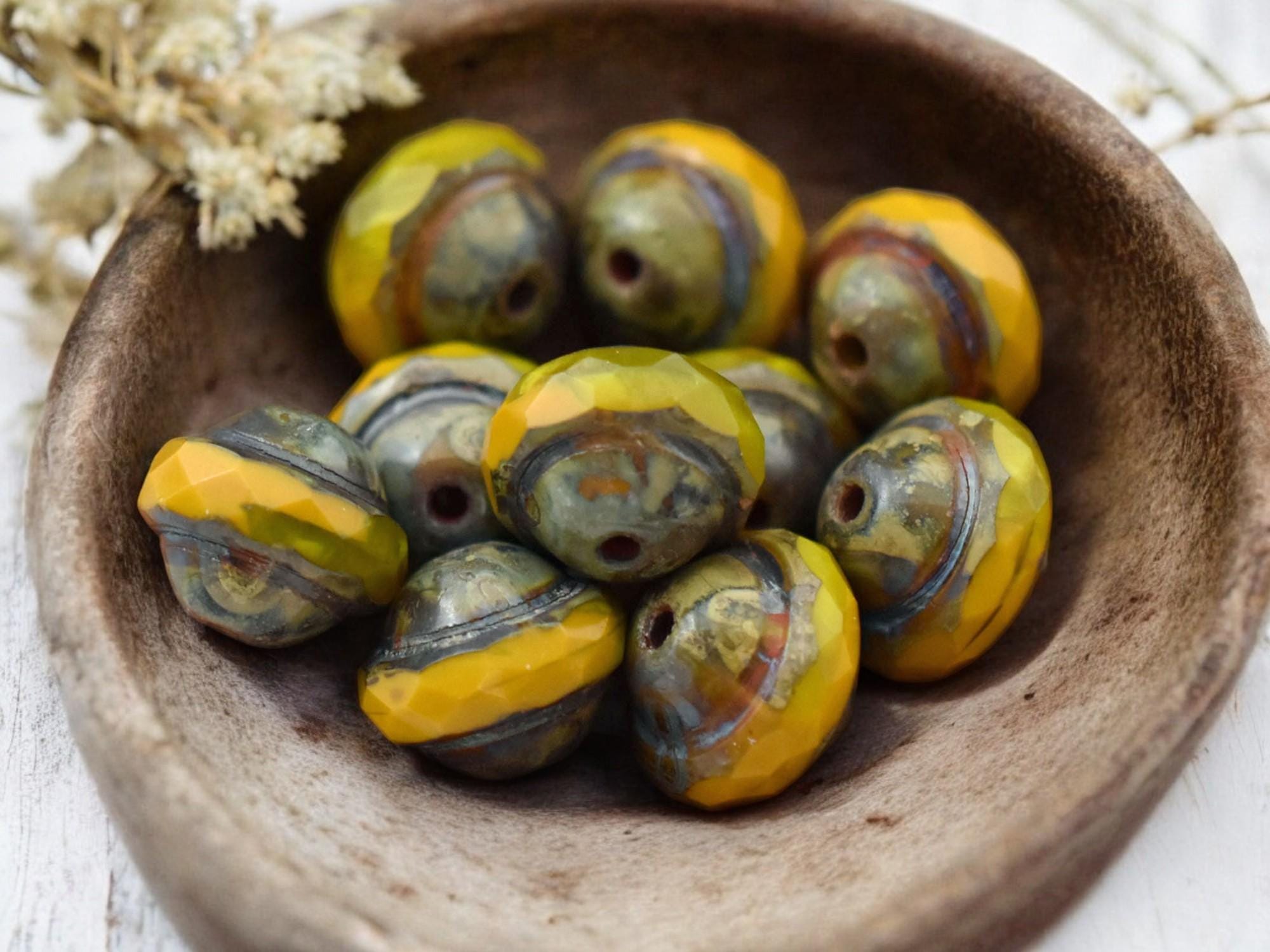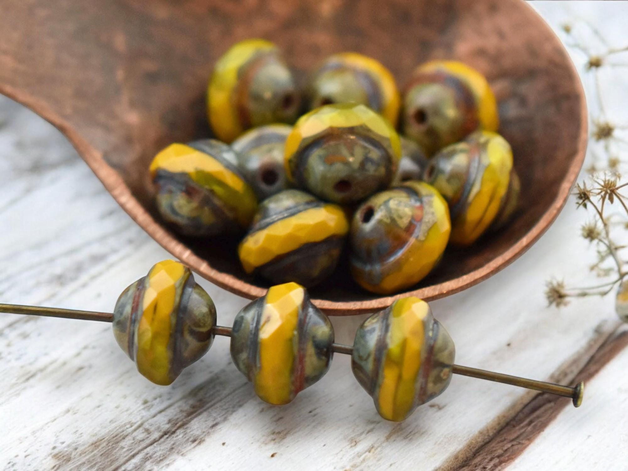*15* 9x7mm Golden Mustard Opal Picasso Saturn Beads
