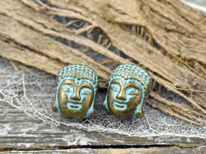*20* Antique Bronze Green Patina Buddha Head Bead 11x9mm