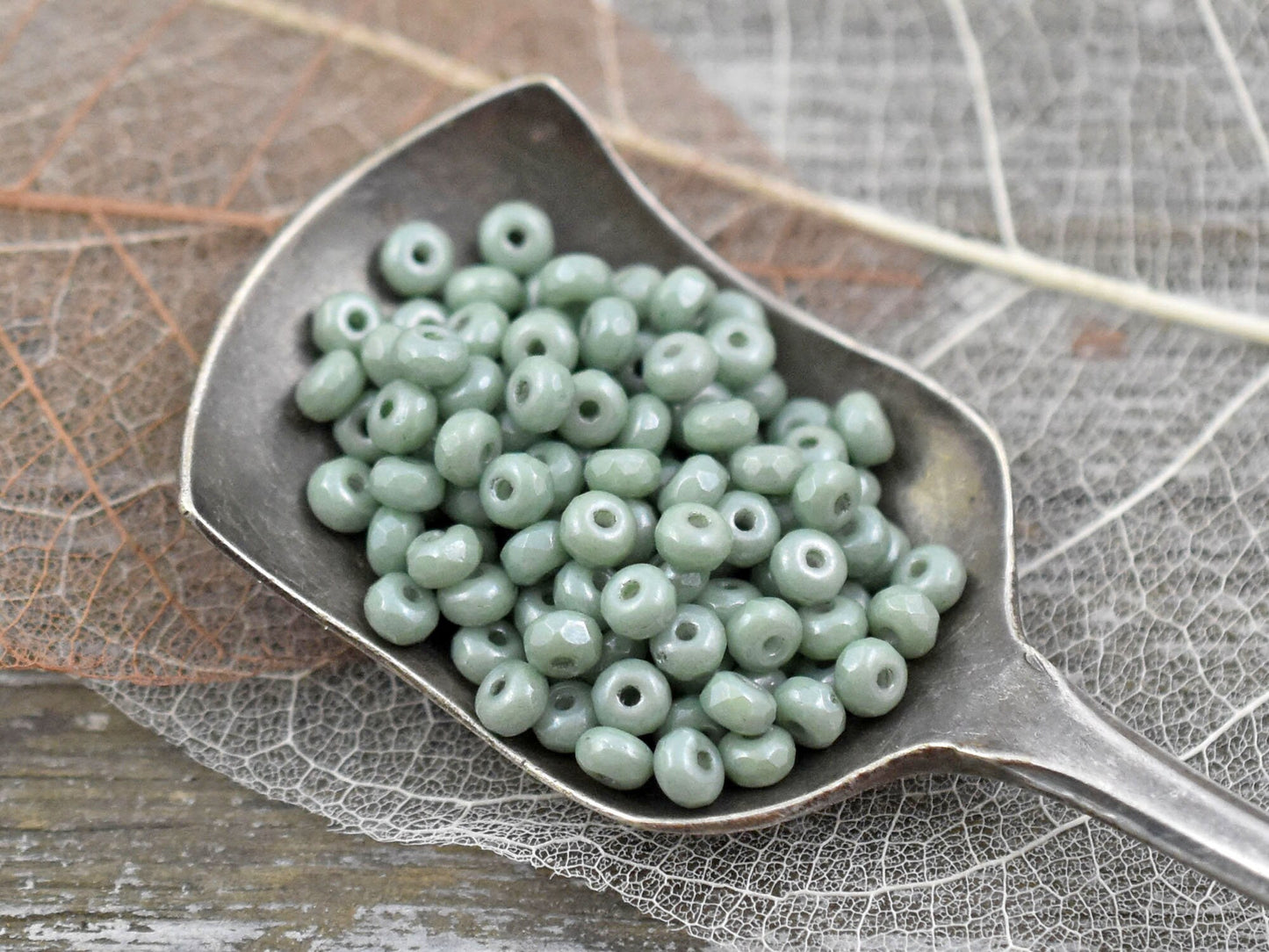 6g 2x3mm Green Luster Faceted Fire Polished Micro Spacer Beads