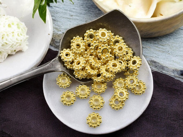 7mm Gold Daisy Spacer Beads -- Choose Your Quantity