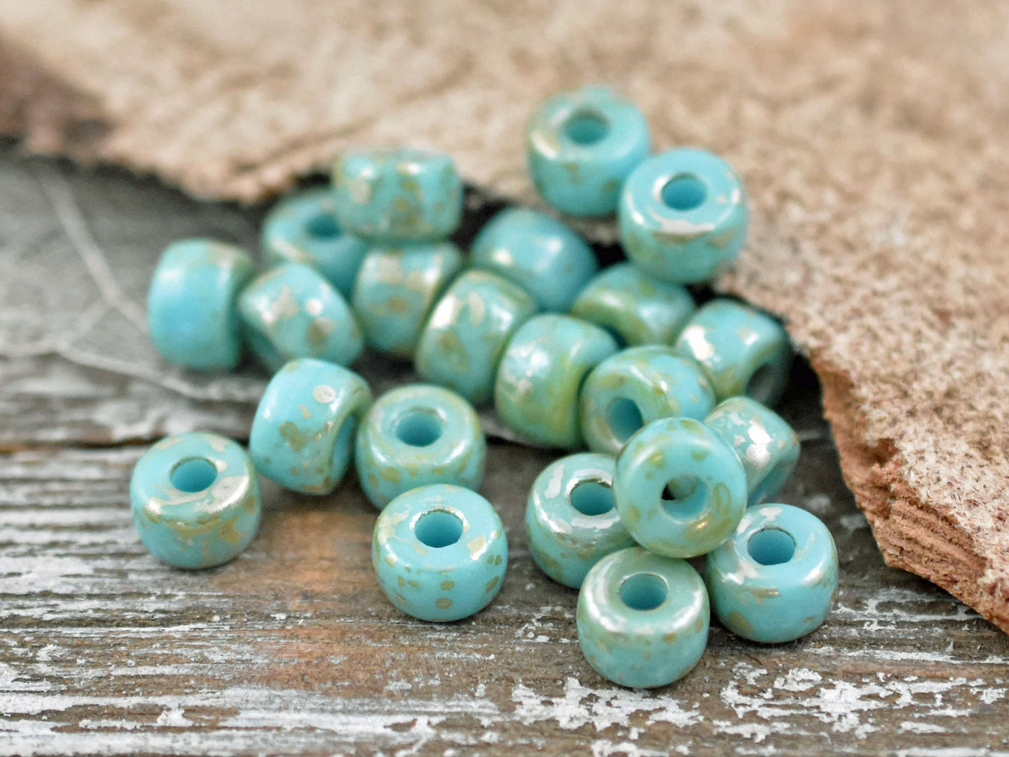 *12* 14mm Turquoise Washed Amber Picasso Wildflower Beads