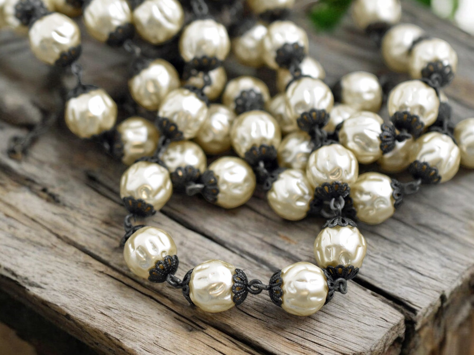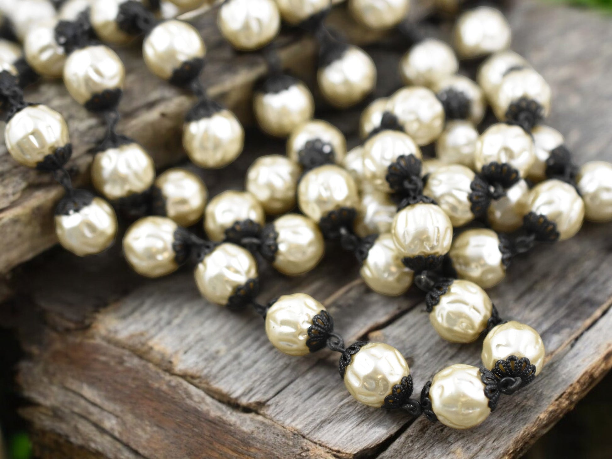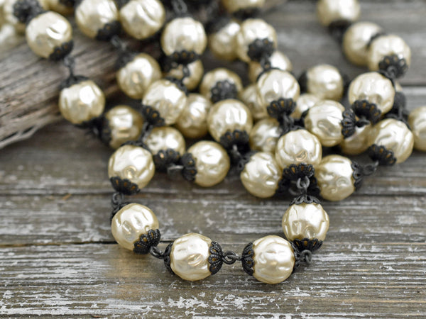 10mm Czech Glass Cream Baroque Pearl Chain w/Black Caps -- Sold by the foot