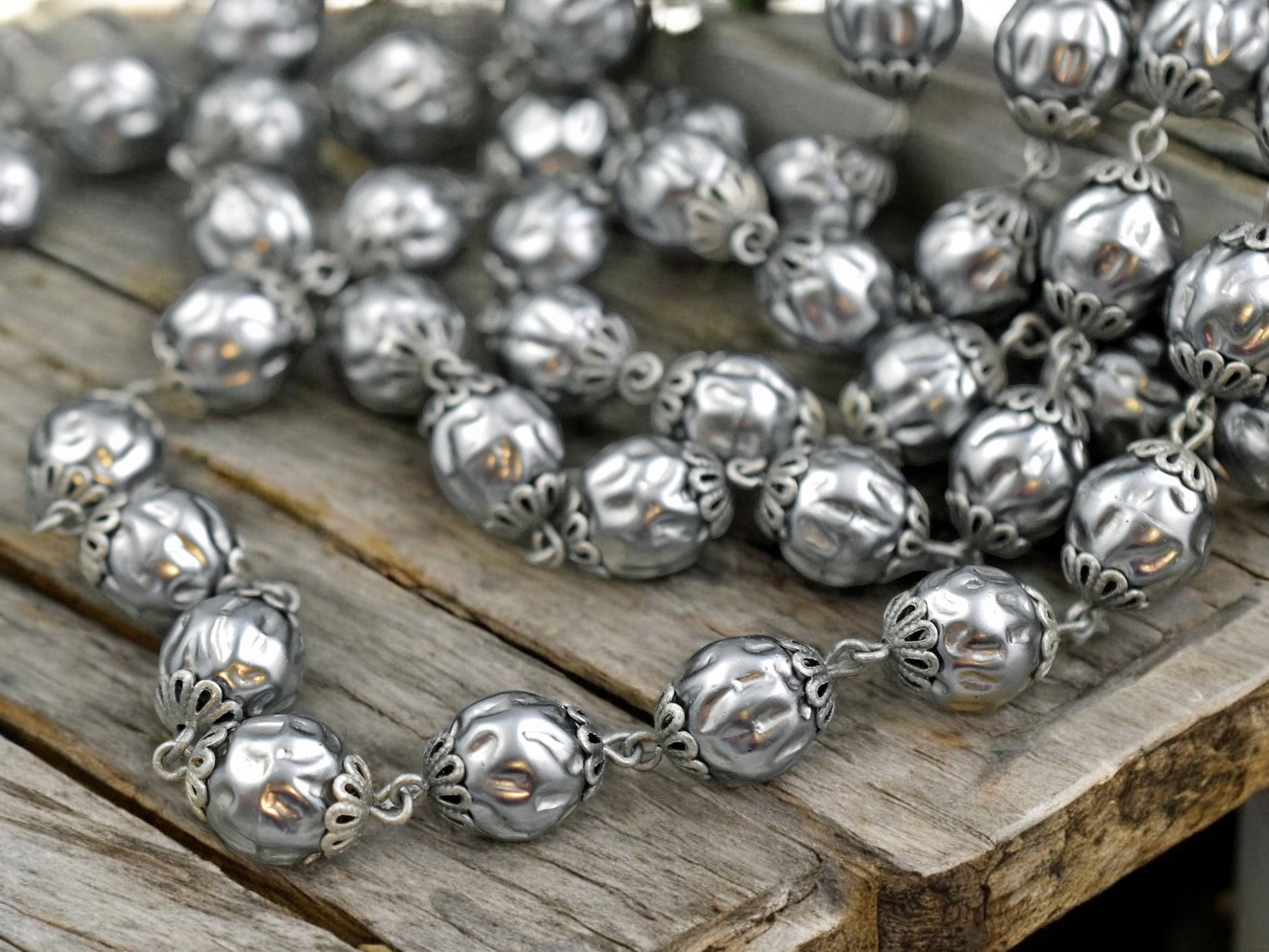 10mm Czech Glass Silver Pearl Chain with Antique Silver Caps -- Sold by the foot