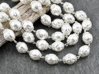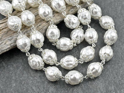 10mm Czech Glass White Baroque Pearl Chain w/ Bright Silver