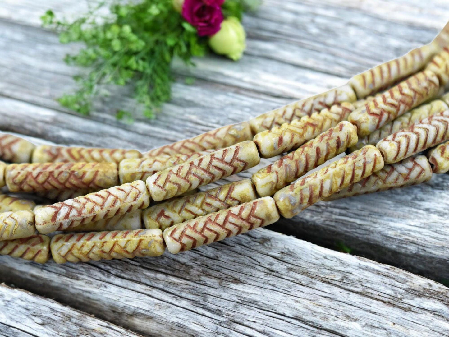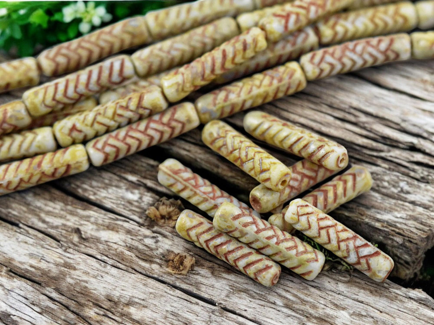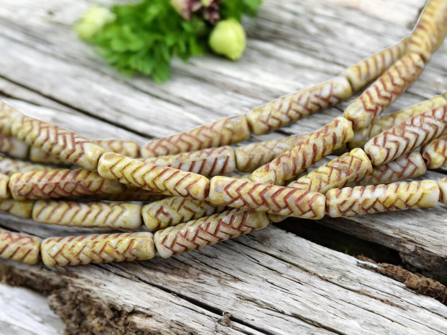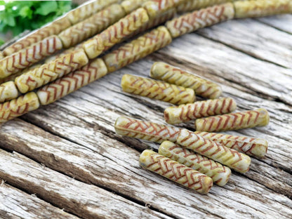 *11* 18x4mm Khaki Picasso Basket Weave Tube Beads
