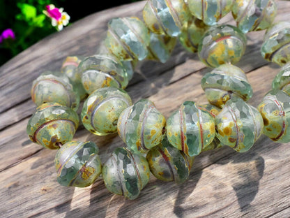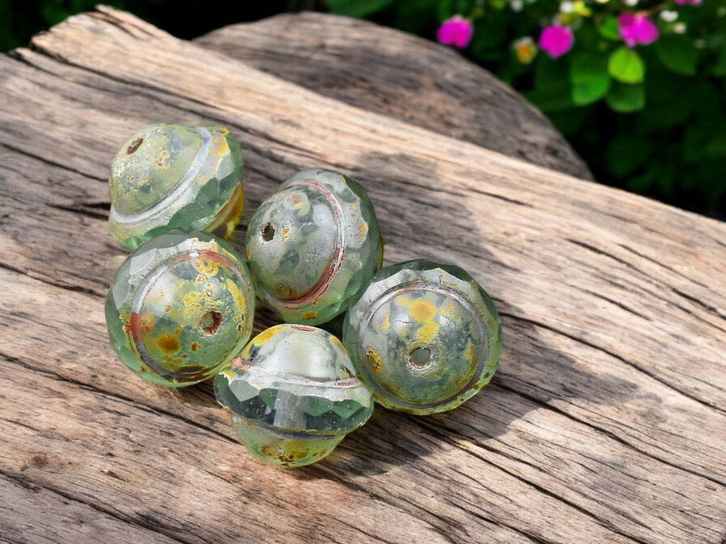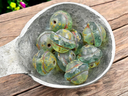 *12* 14mm Turquoise Washed Amber Picasso Wildflower Beads