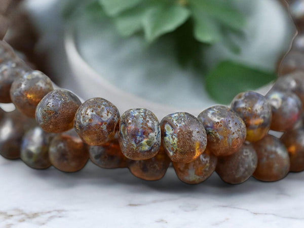 *28* 8mm Amber Travertine Table Cut Round Beads