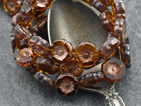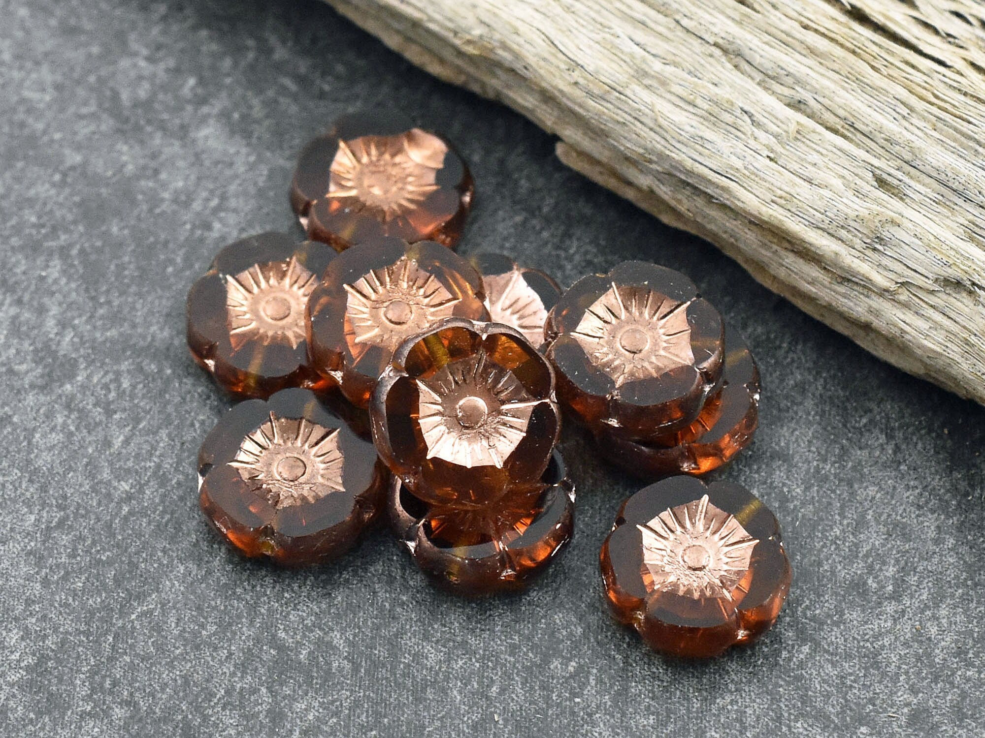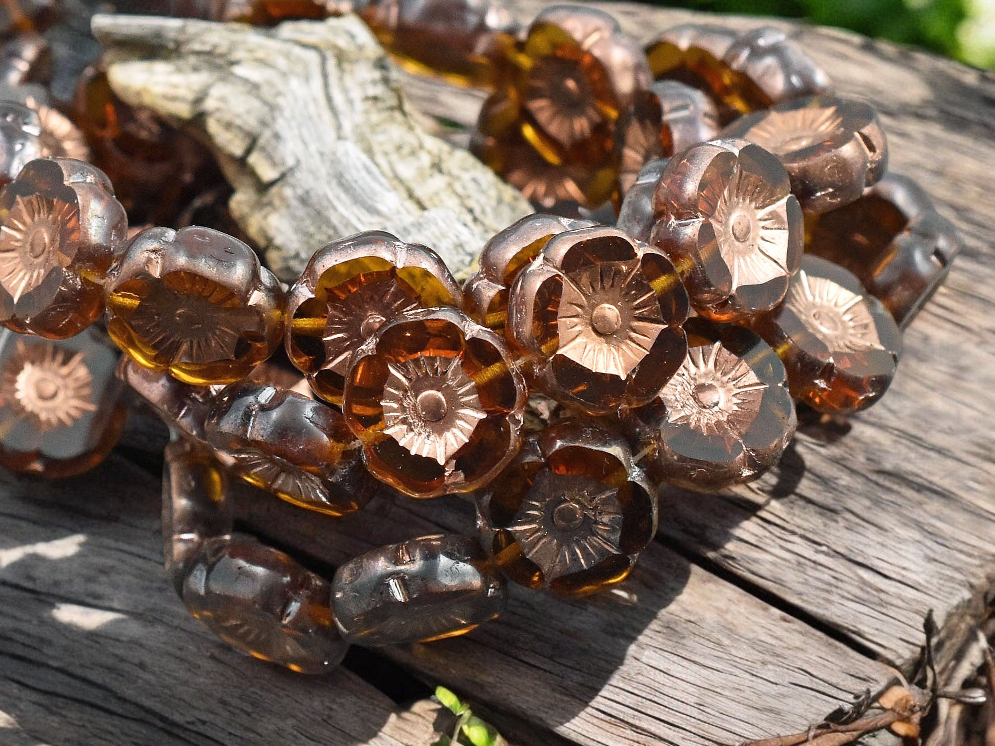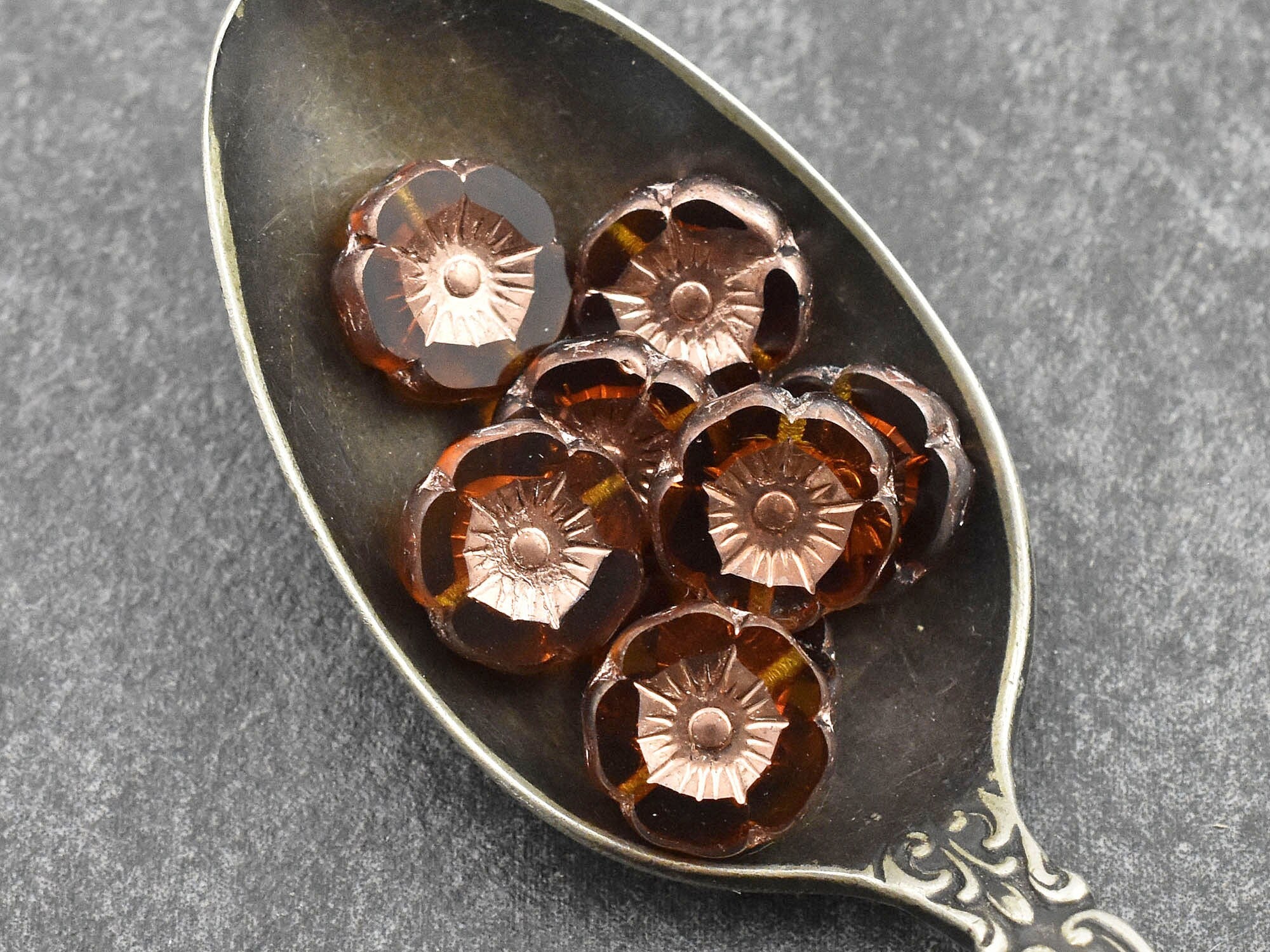 *12* 12mm Copper Washed Topaz Table Cut Hawaiian Flower Beads