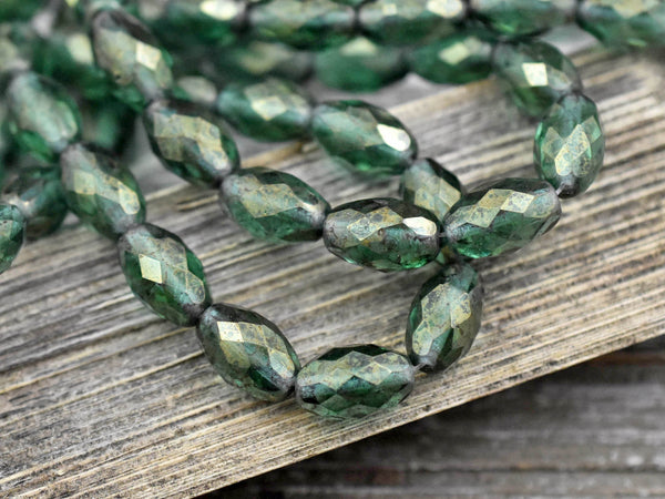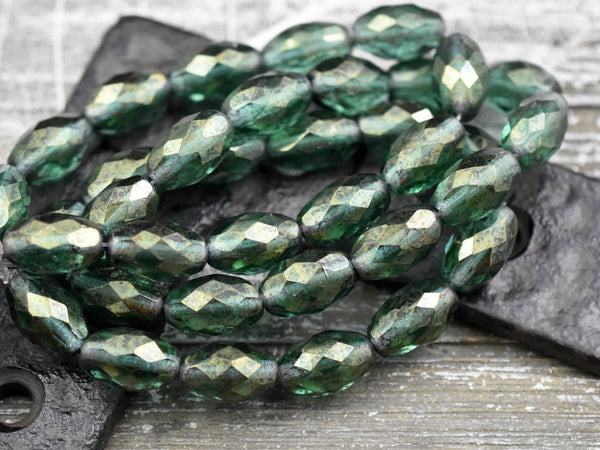 *12* 12x8mm Gold Lustered Emerald Green Faceted Oval Beads