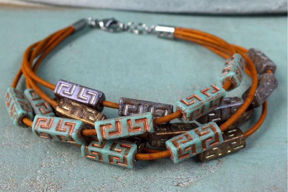 ♥ Size: 15x5mm, approx 1.6mm hole -- most beads will accommodate 1.5mm leather cord (see last photo for bracelet design idea from designer Nela Kabelova)