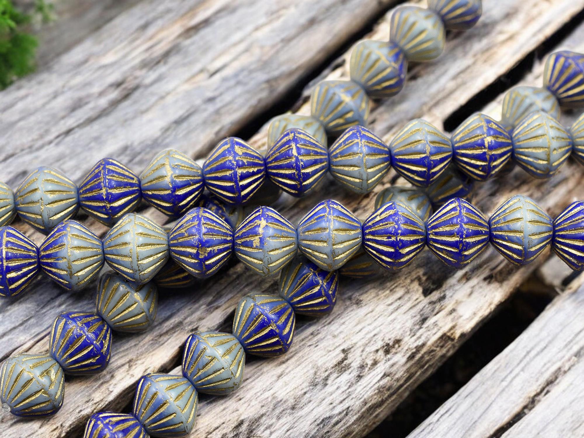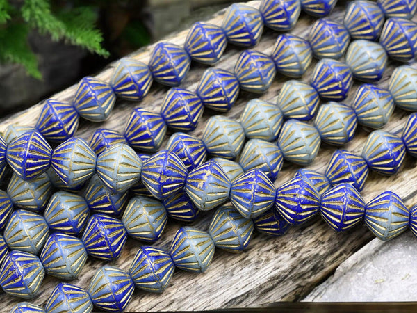 *12* 8x9mm Gold Washed Blended Turquoise & Blue Carved Bicone Beads