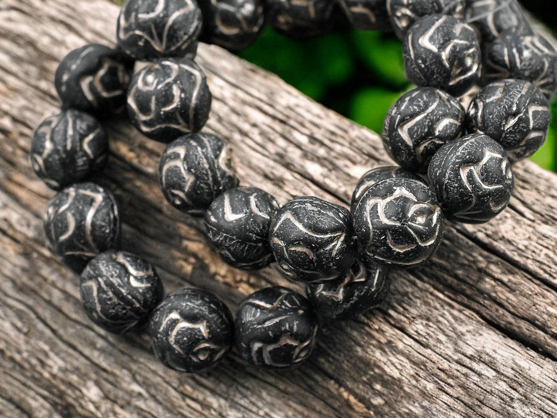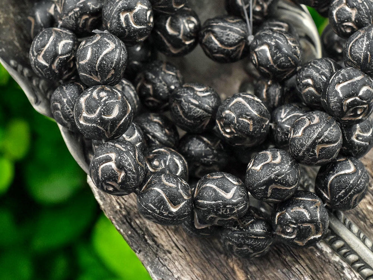 *15* 10mm Metallic Beige Washed Matte Black Round Rose Beads