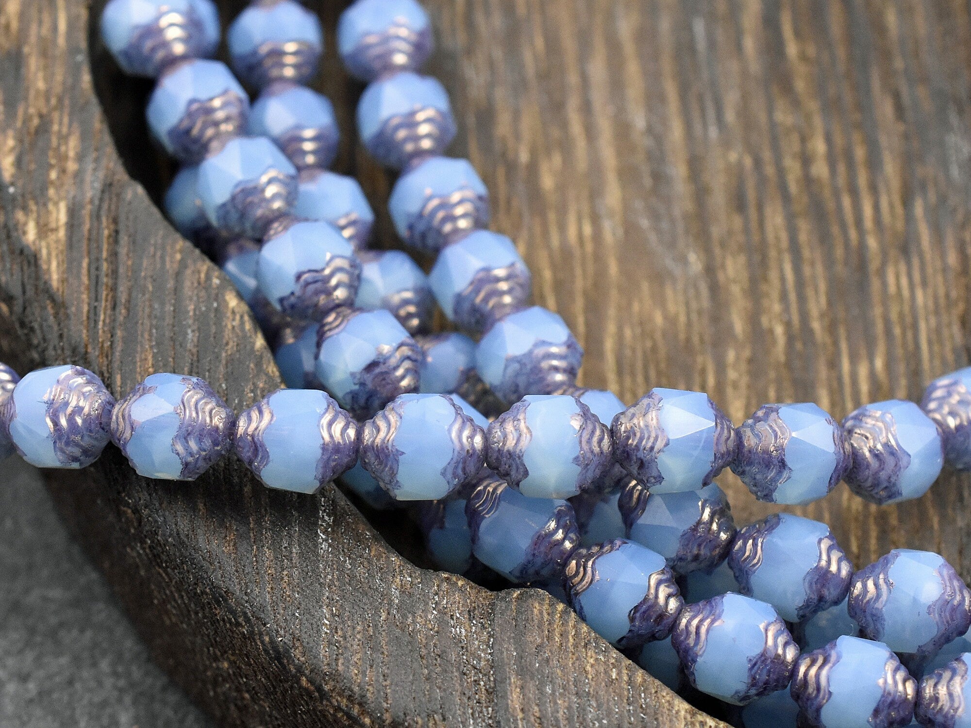 *15* 10x8mm Bronze Washed Blue Opaline Turbine Beads
