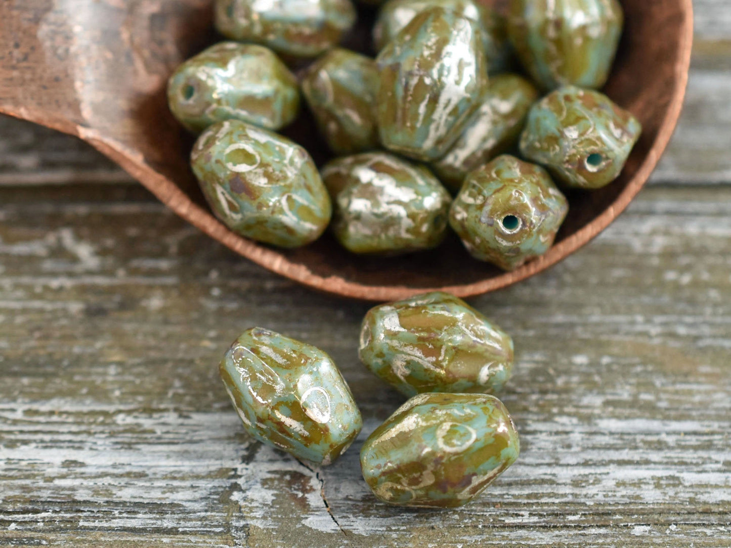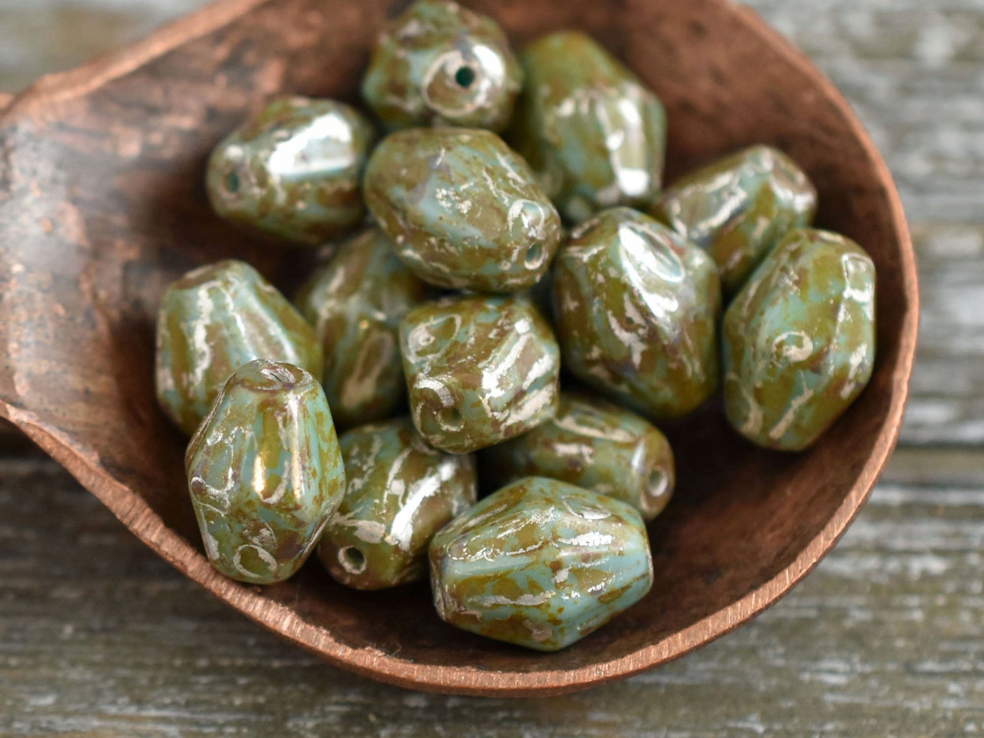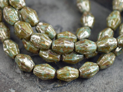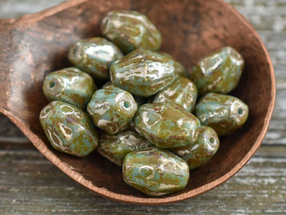 *15* 10x8mm Opaque Green Turquoise Travertine Bicone Beads