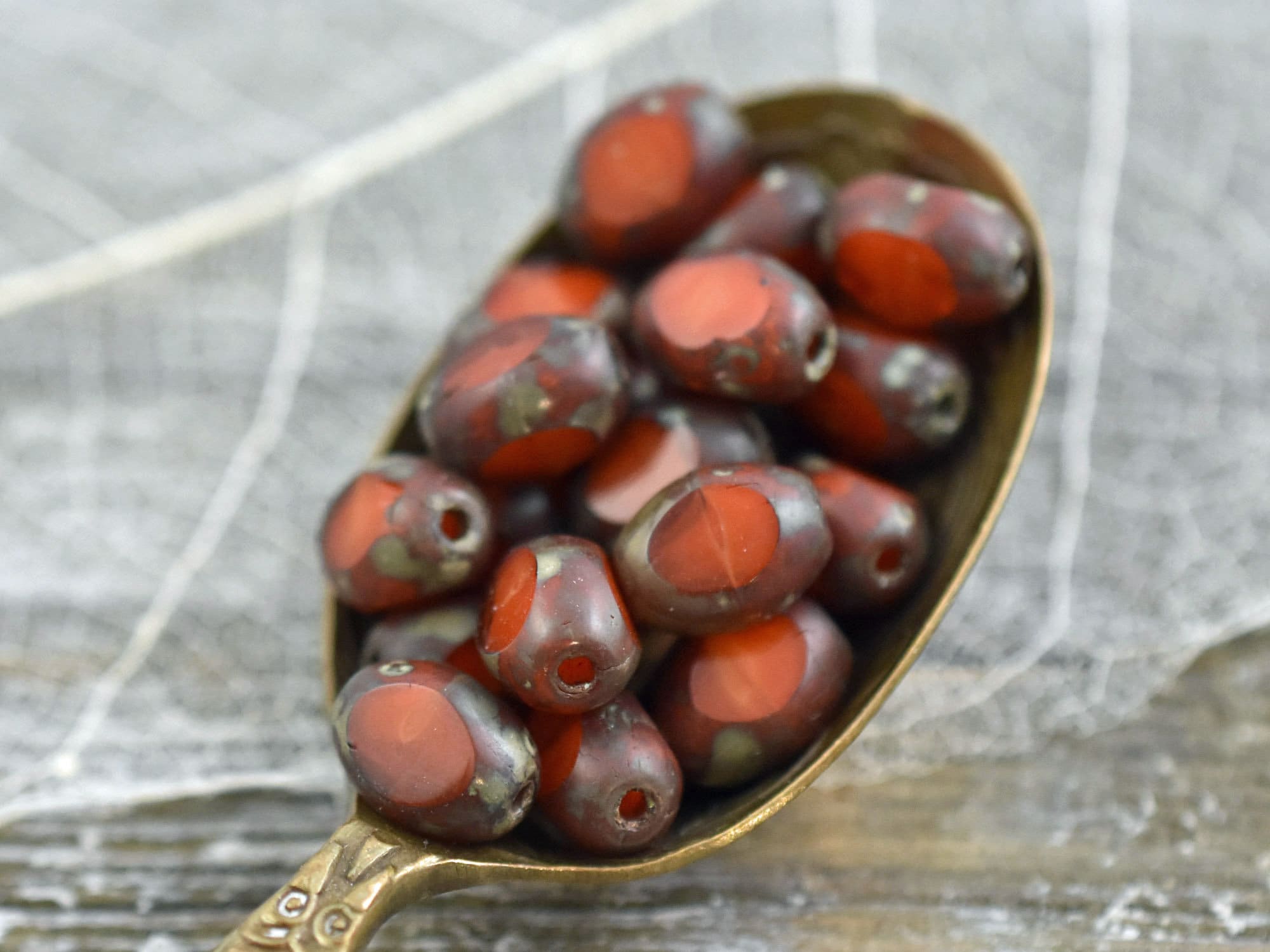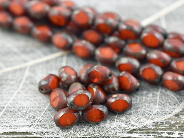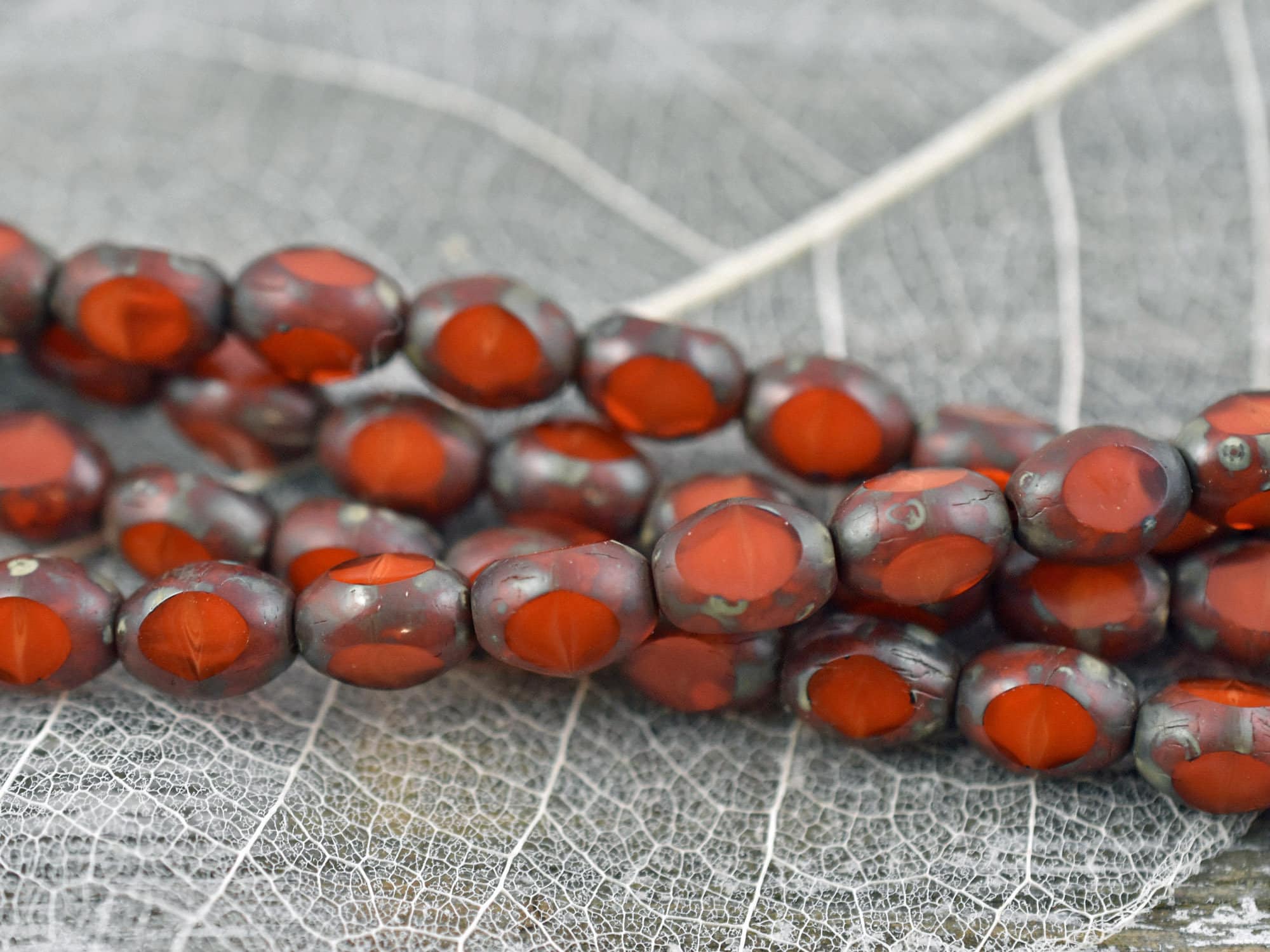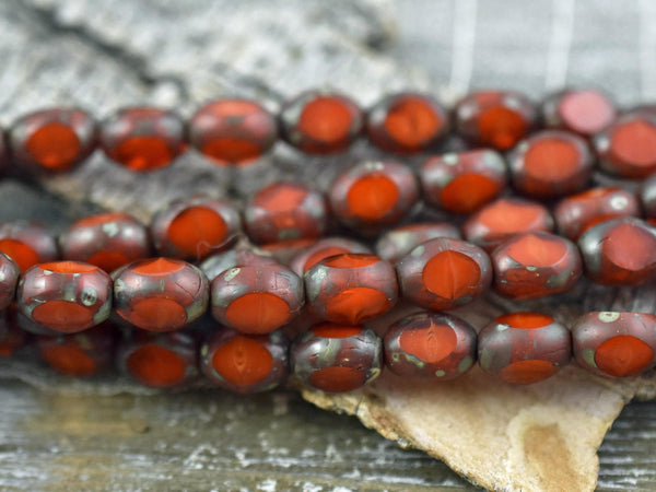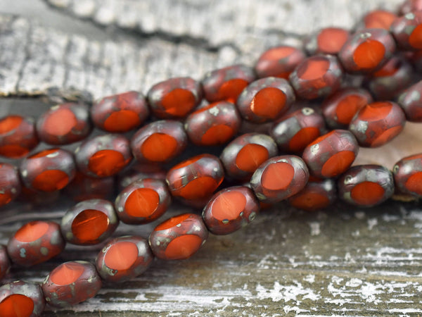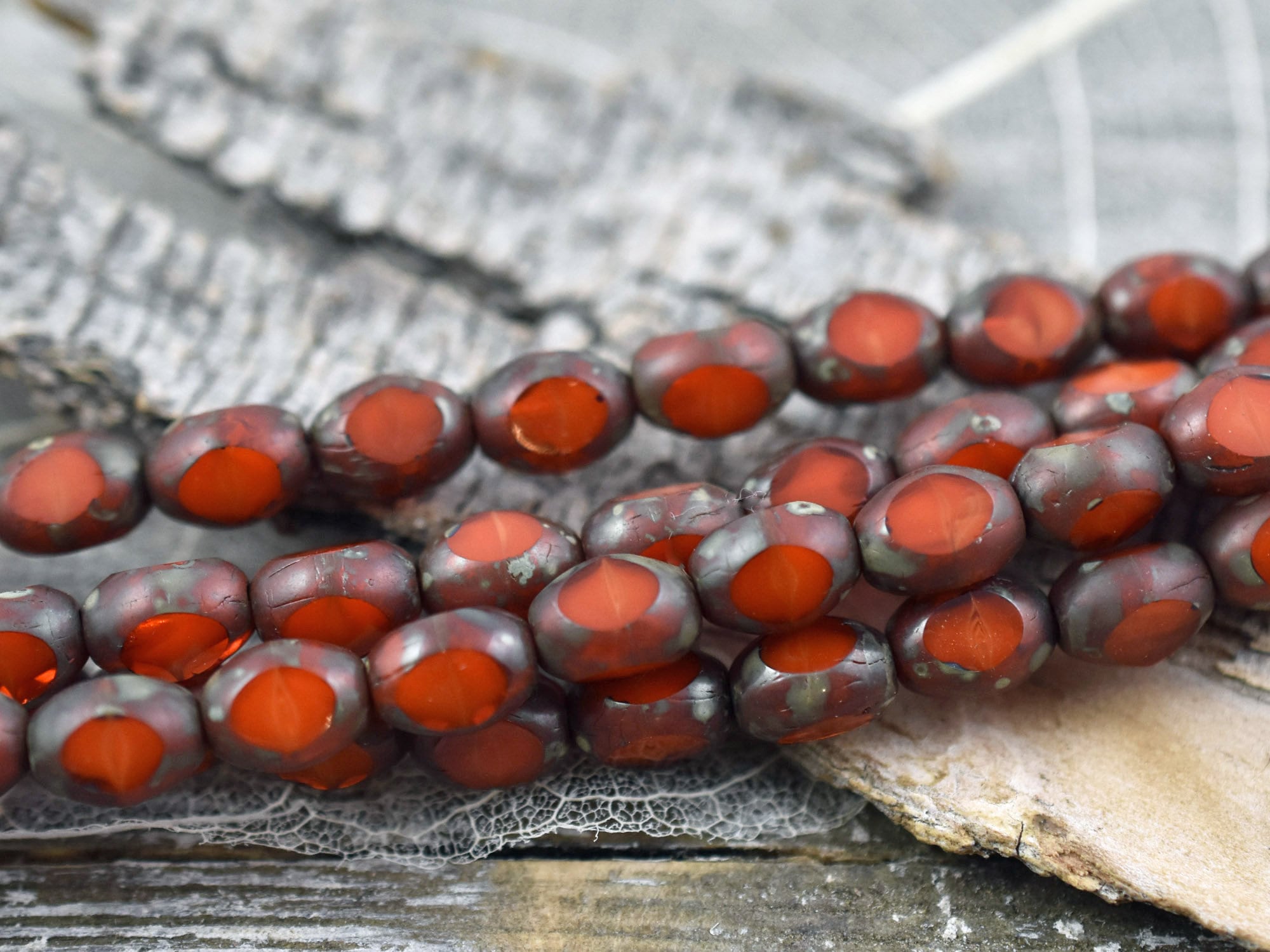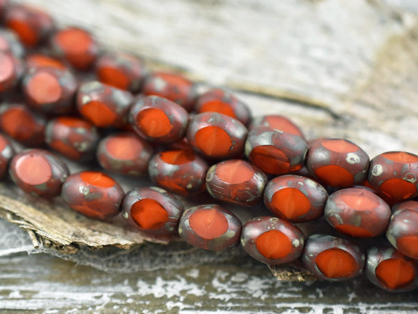 *15* 6x8mm Orange Travertine Fire Polished Window Cut Oval Beads
