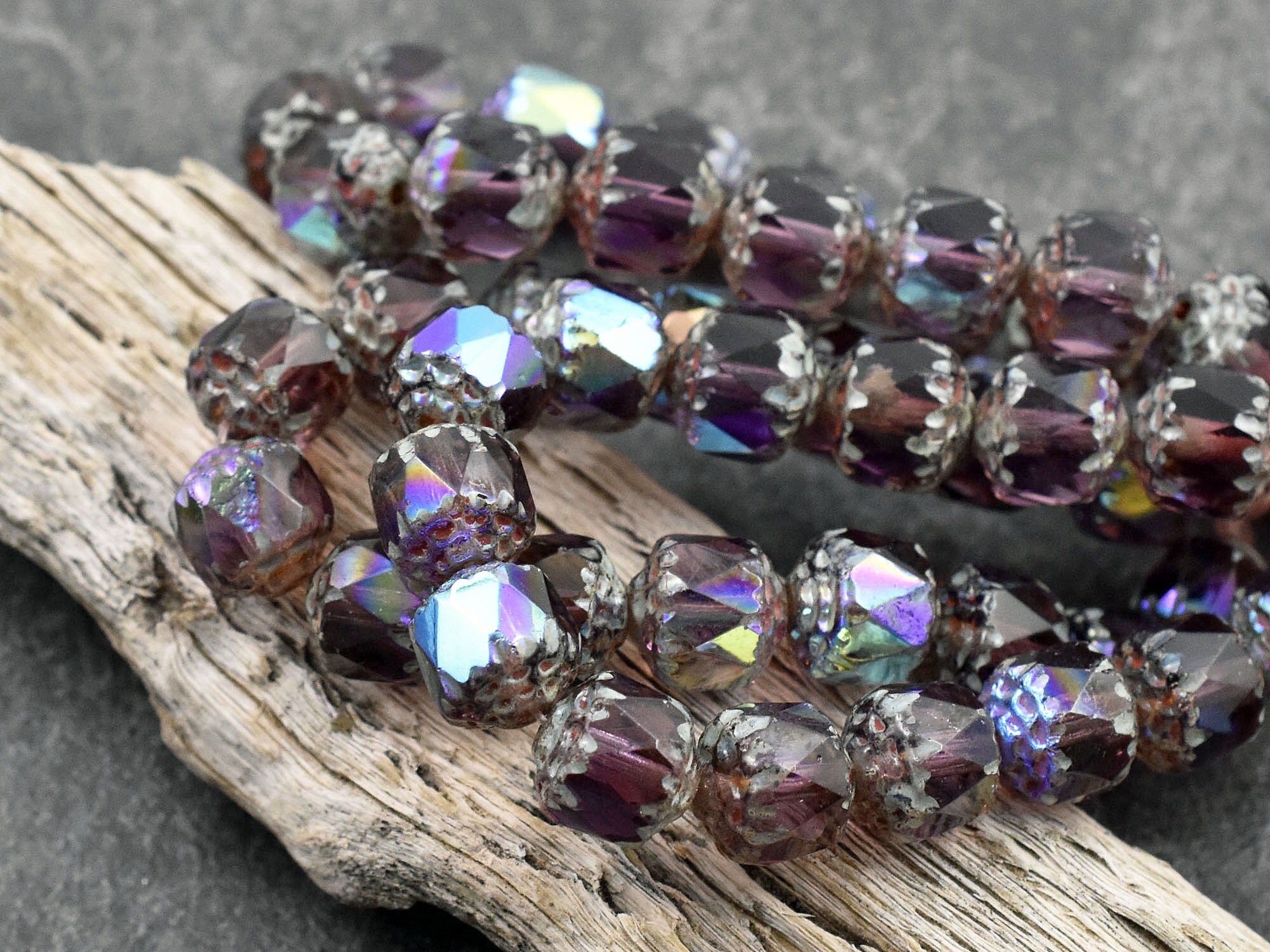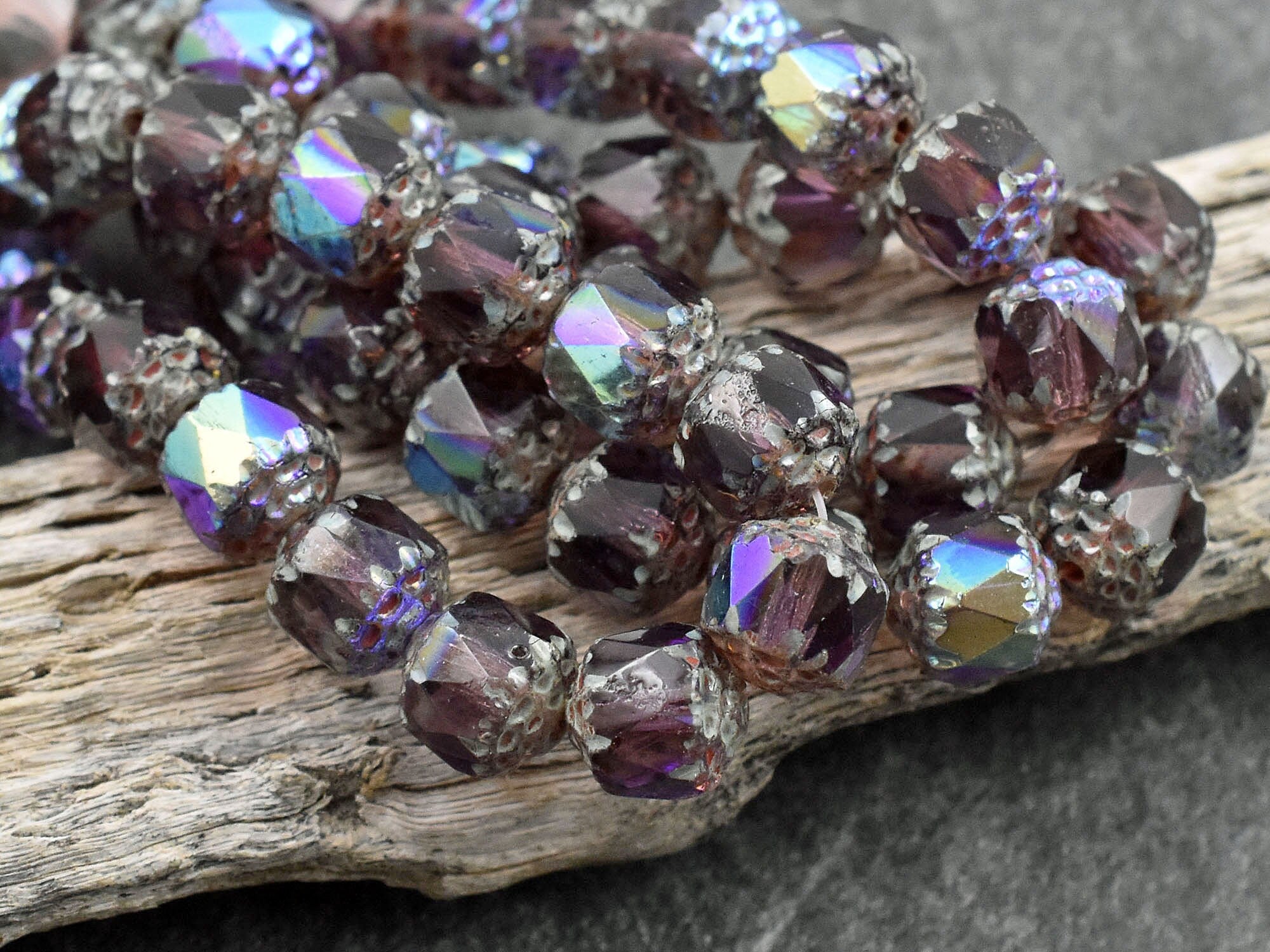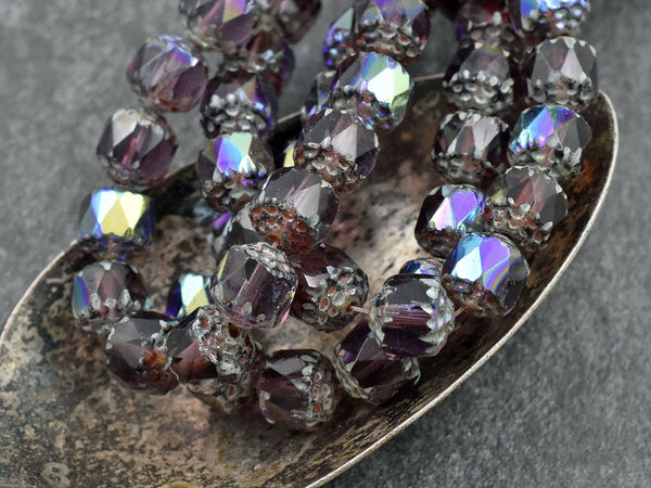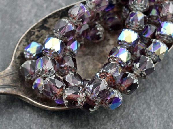 *15* 8mm Amethyst Picasso AB Fire Polished Cathedral Beads