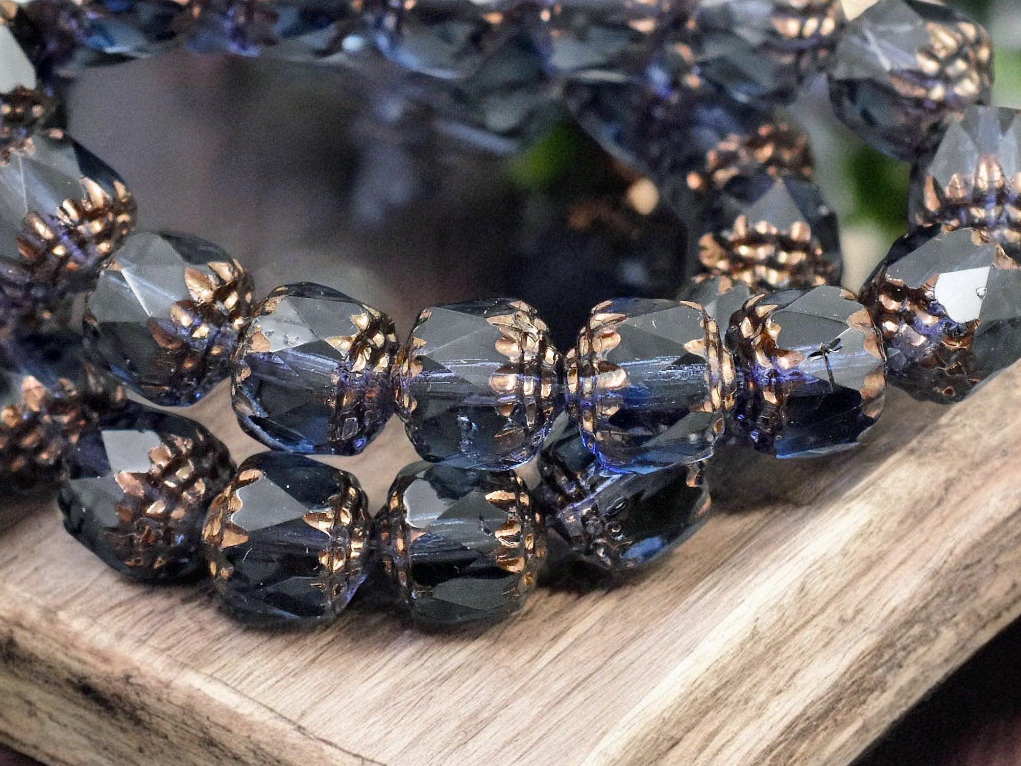 *15* 8mm Bronze Washed Montana Blue Fire Polished Cathedral Beads