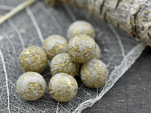 *20* 8mm Gold Washed Etched Ivory Round Druk Beads