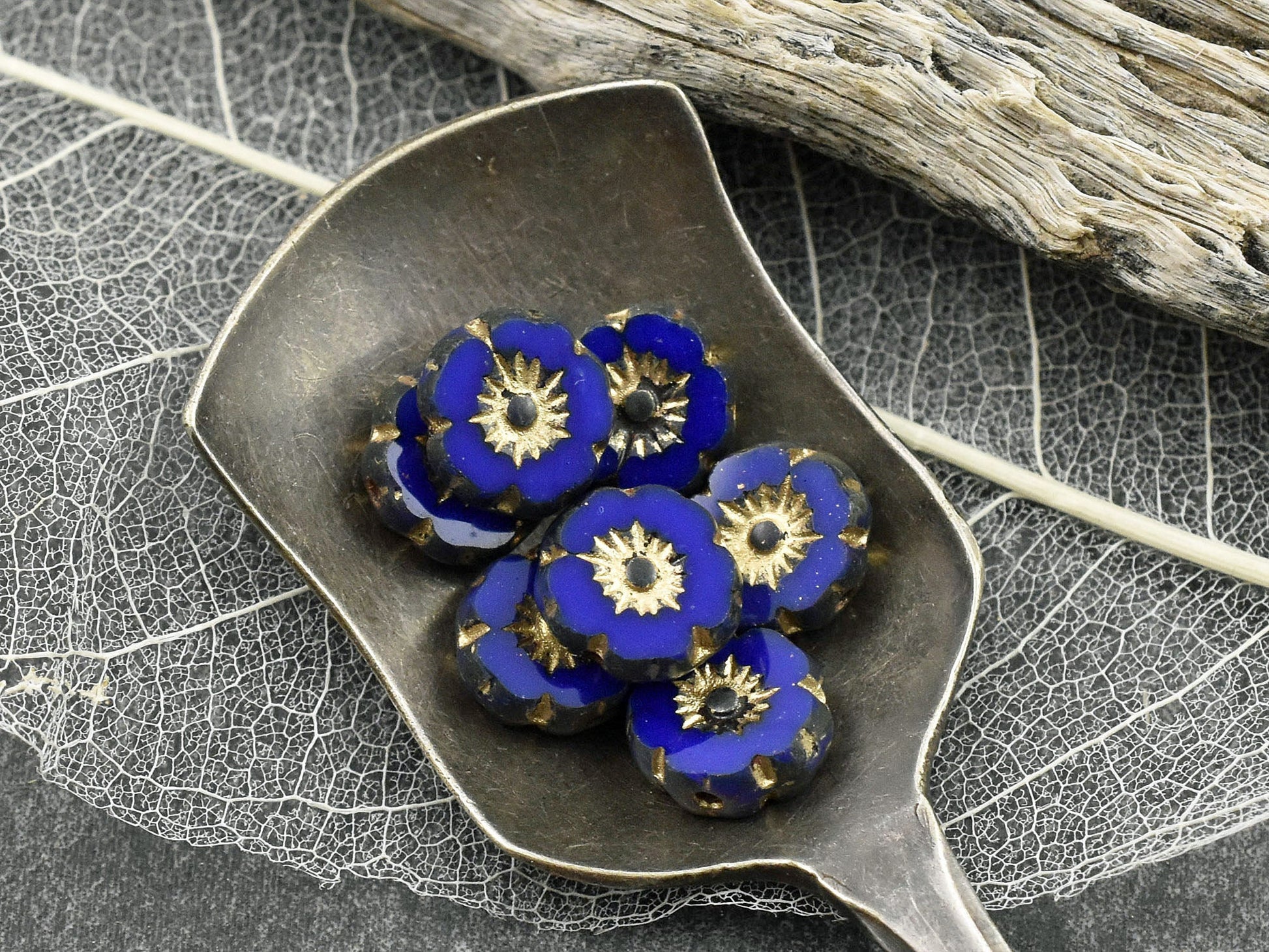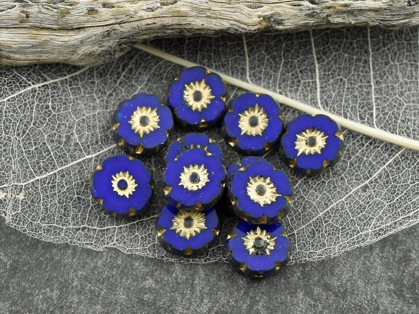 *15* 8mm Gold Washed Indigo Table Cut Hawaiian Flower Beads