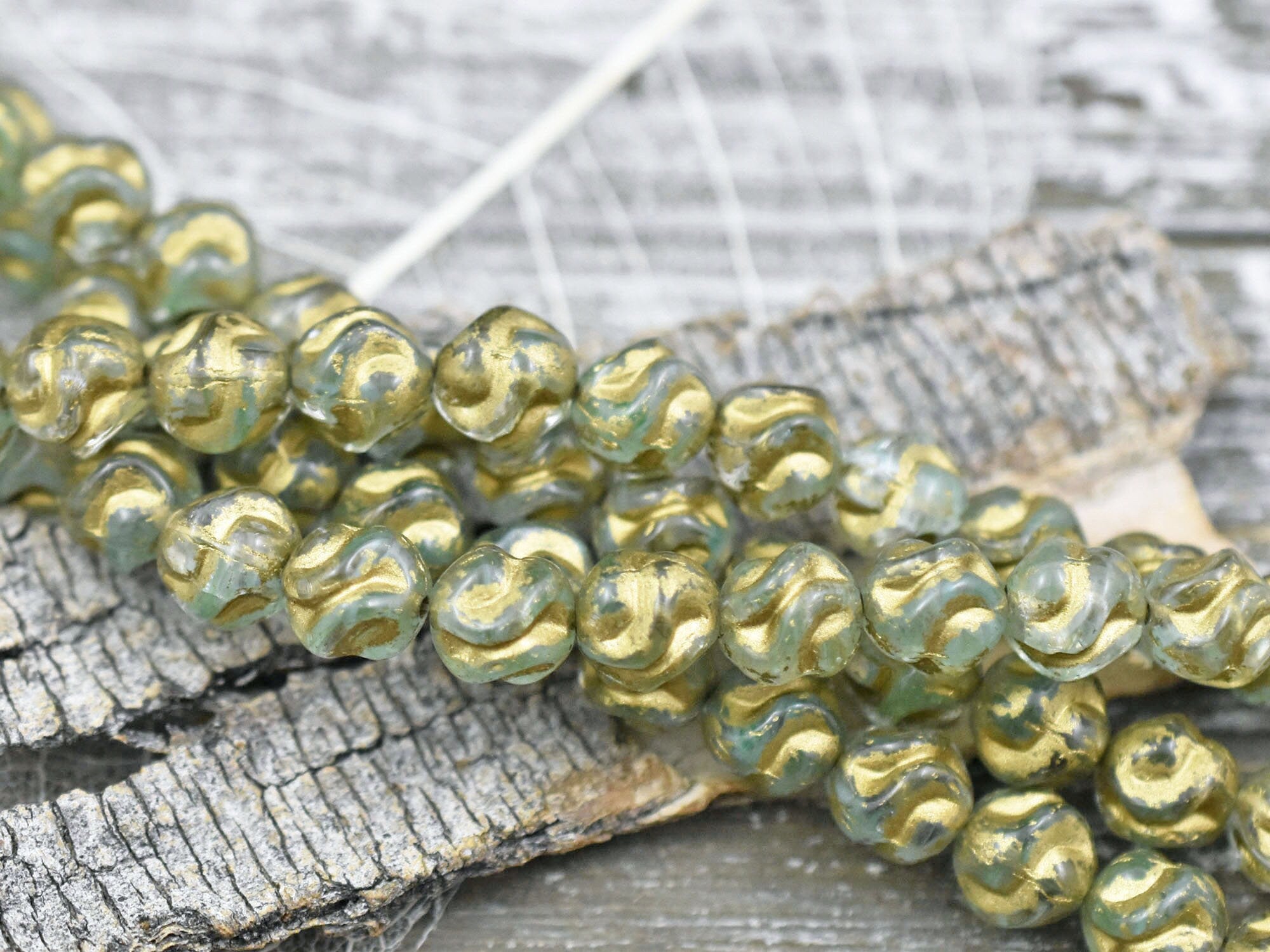 *15* 8mm Gold Washed Mint Crystal Round Love Knot Beads