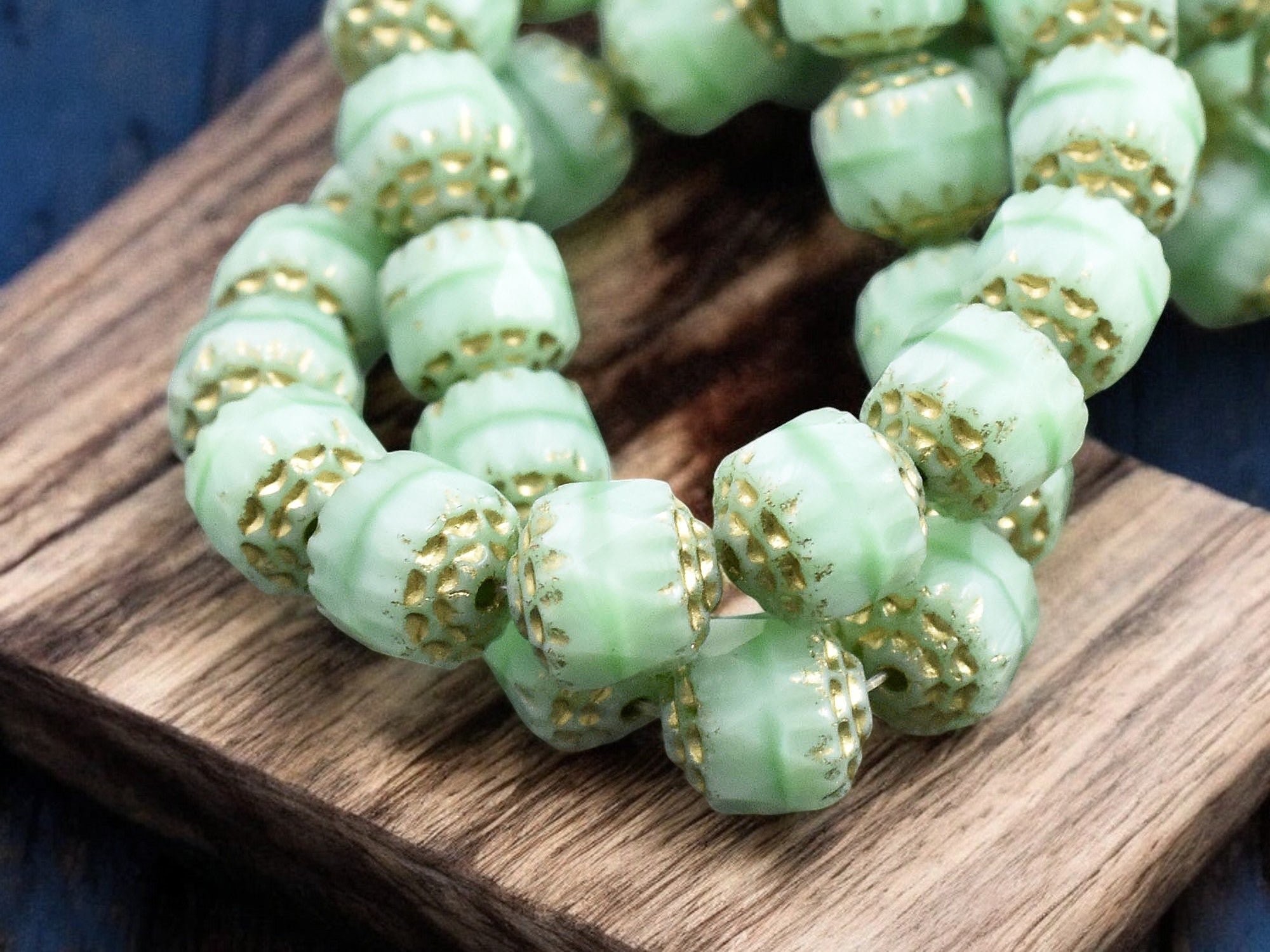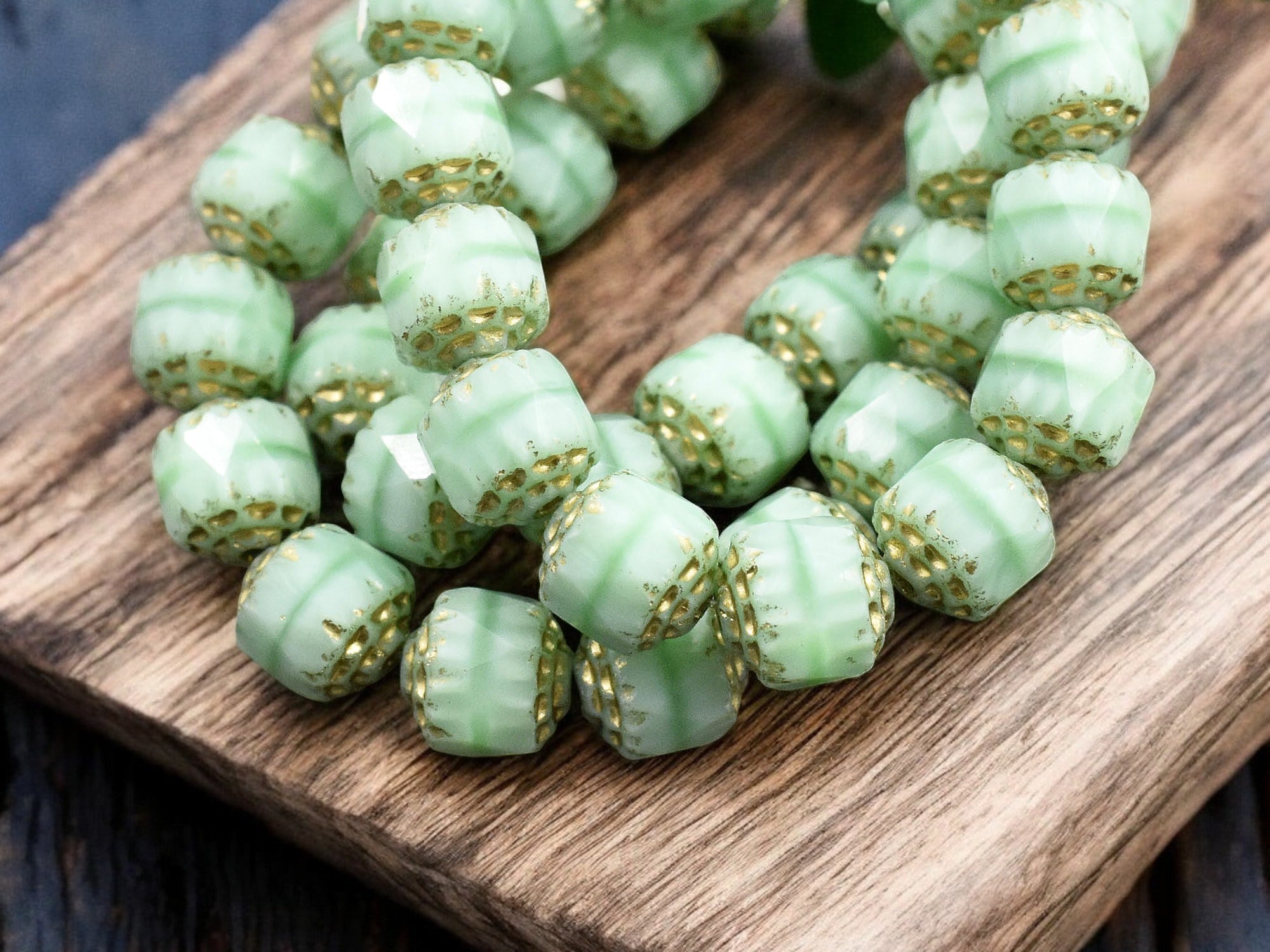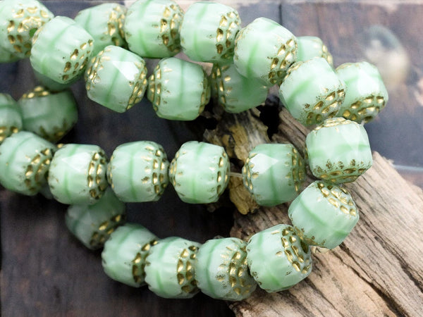 *15* 8mm Gold Washed Mint Silk Fire Polished Cathedral Beads