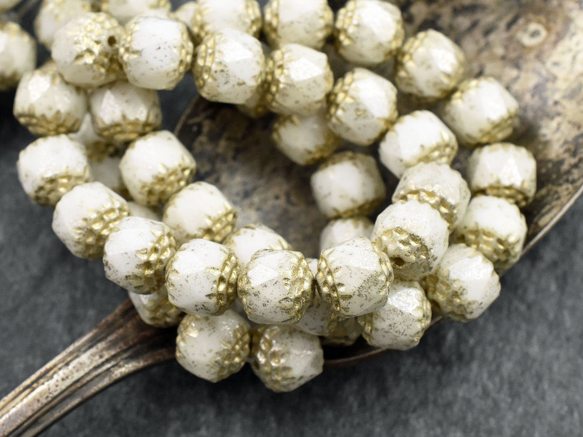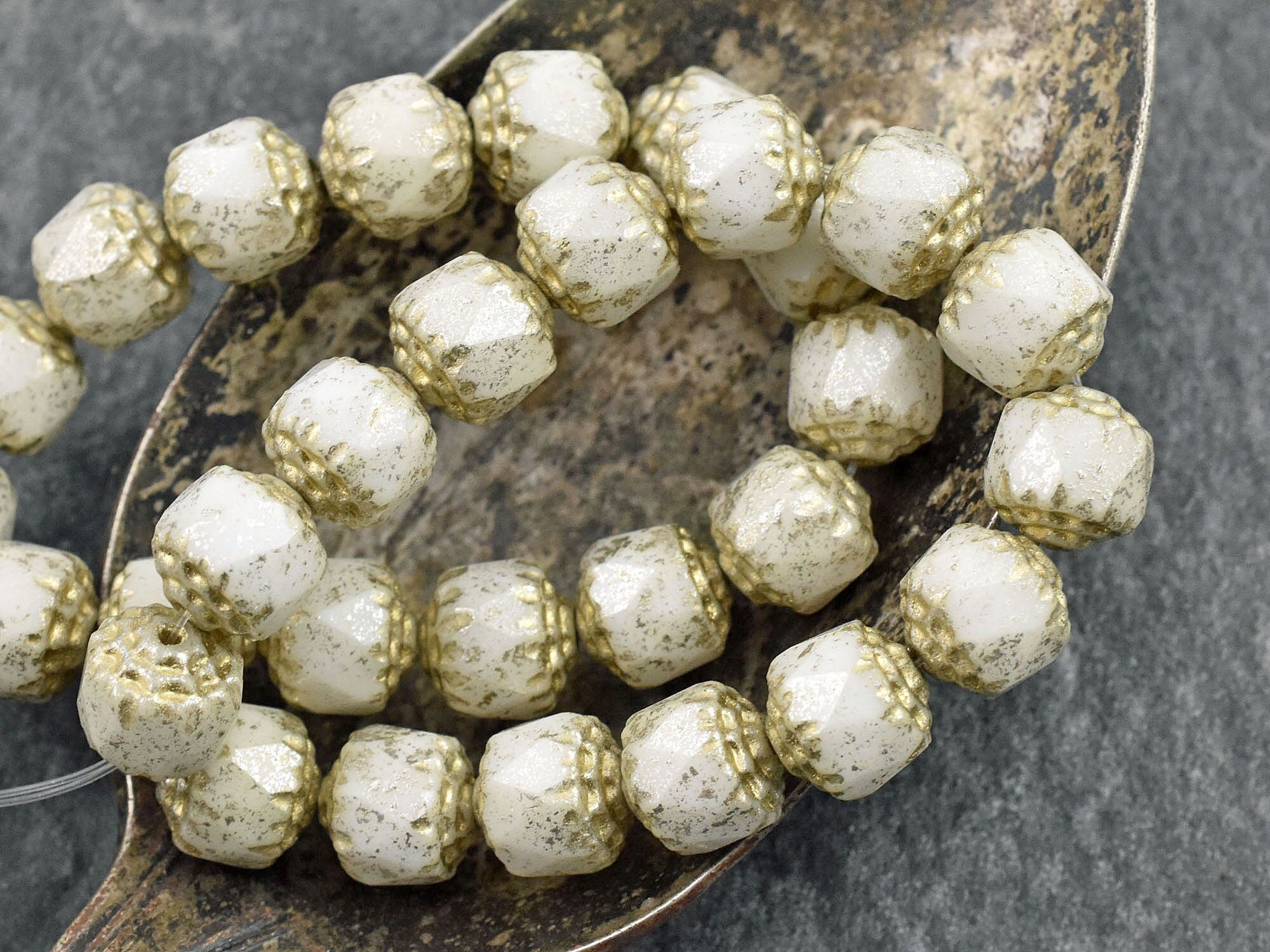 *15* 8mm Gold Washed Opaque Ivory Mercury Cathedral Beads