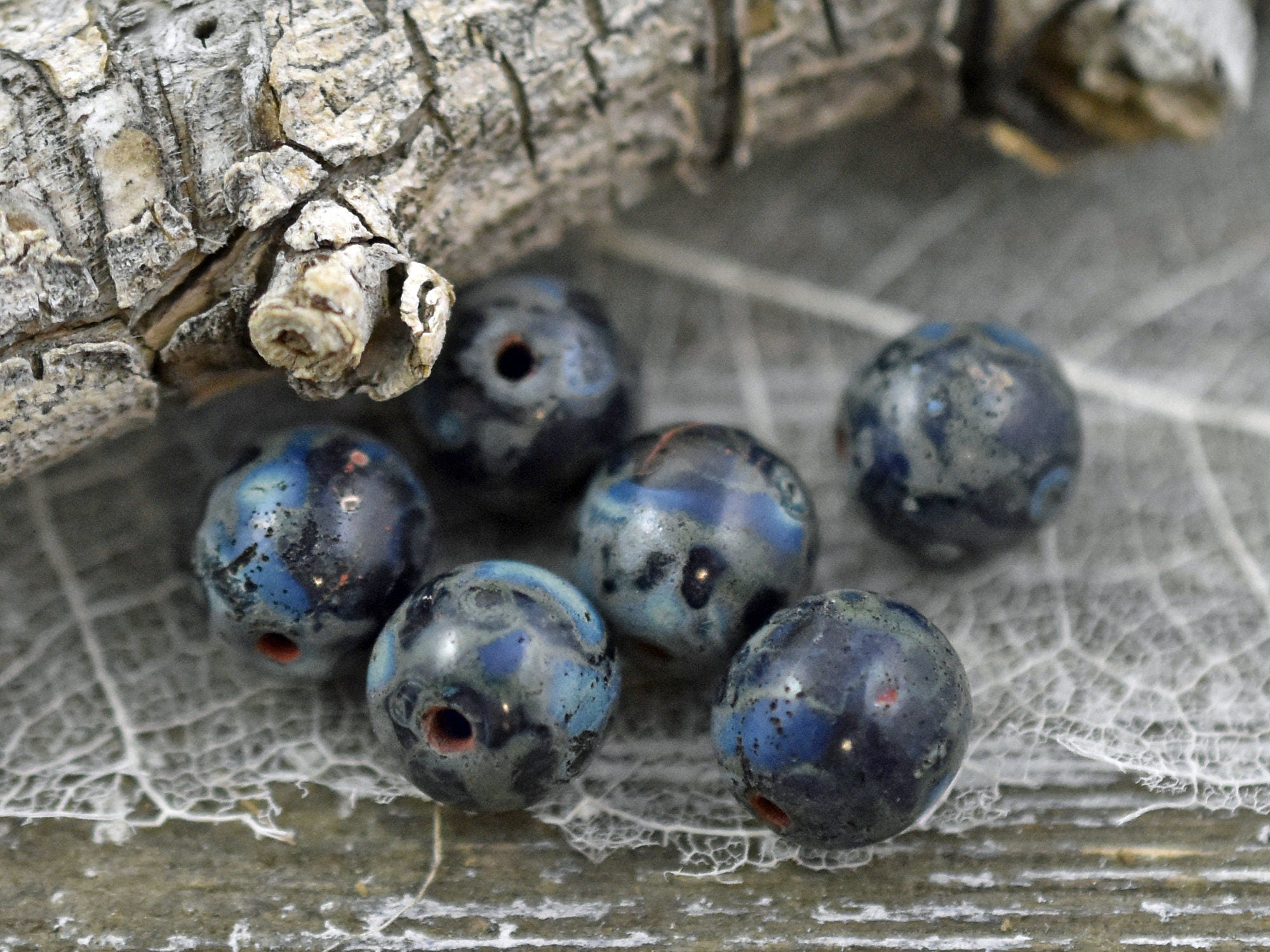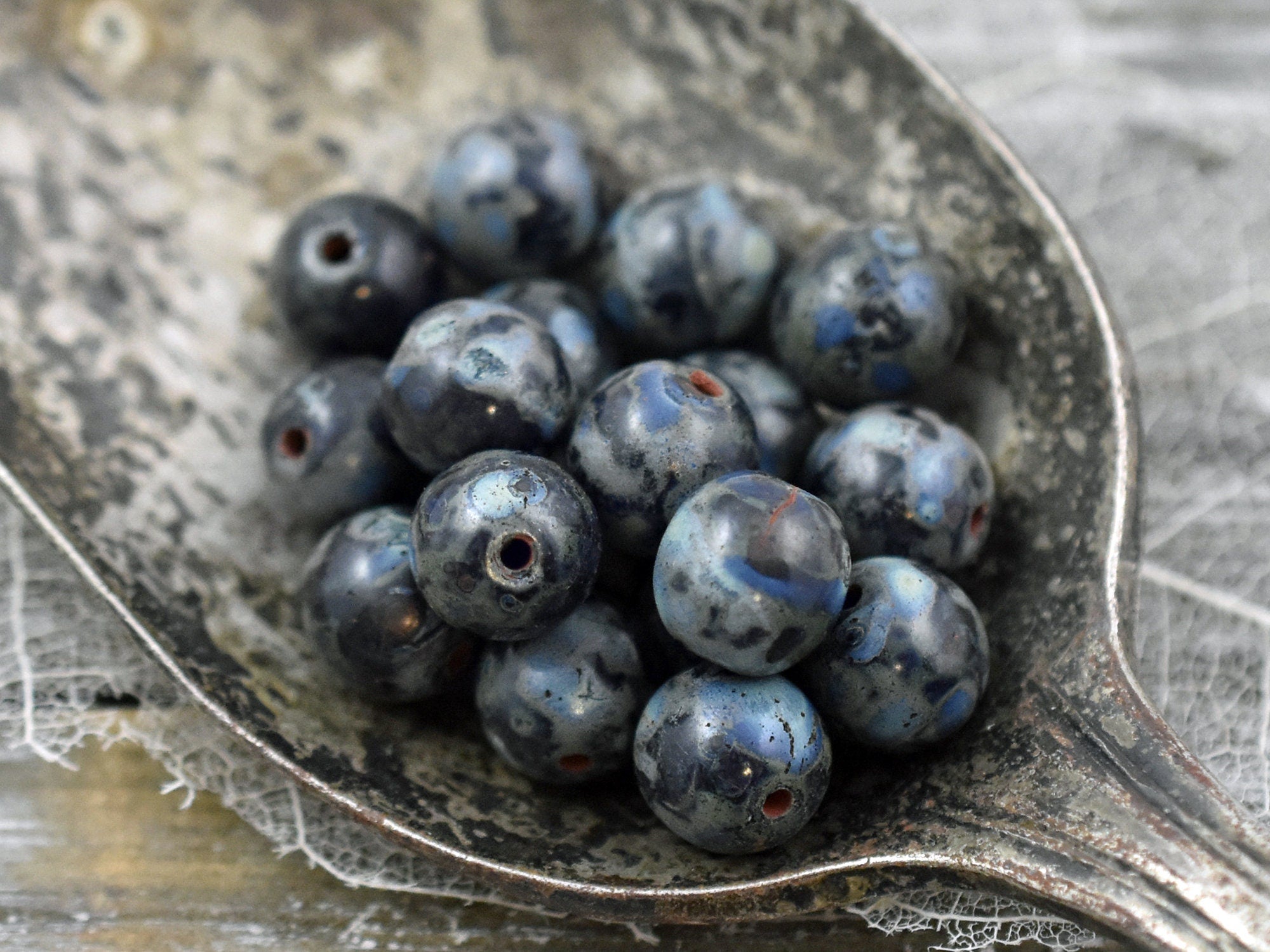 *25* 8mm Sapphire Picasso Round Druk Beads