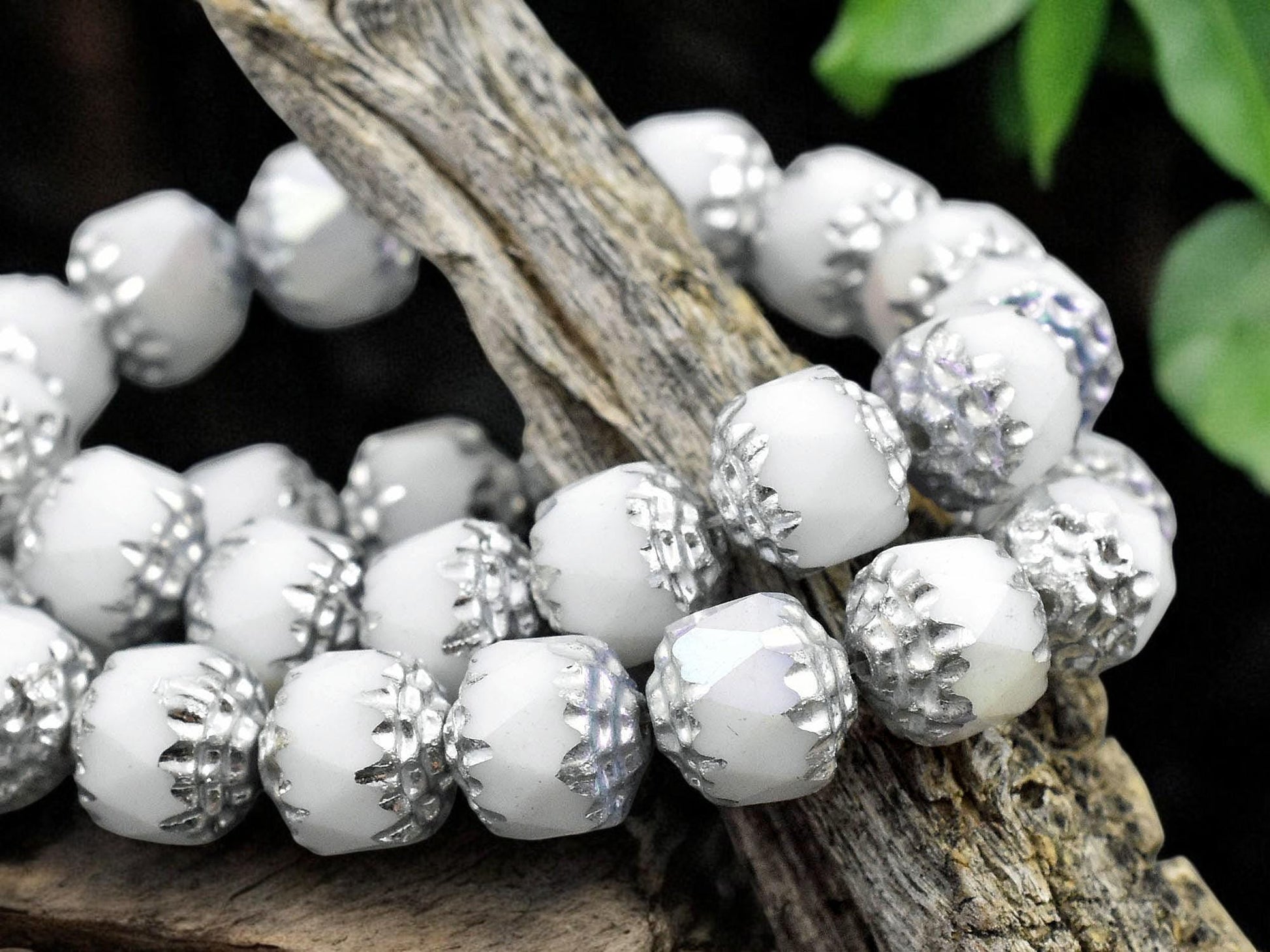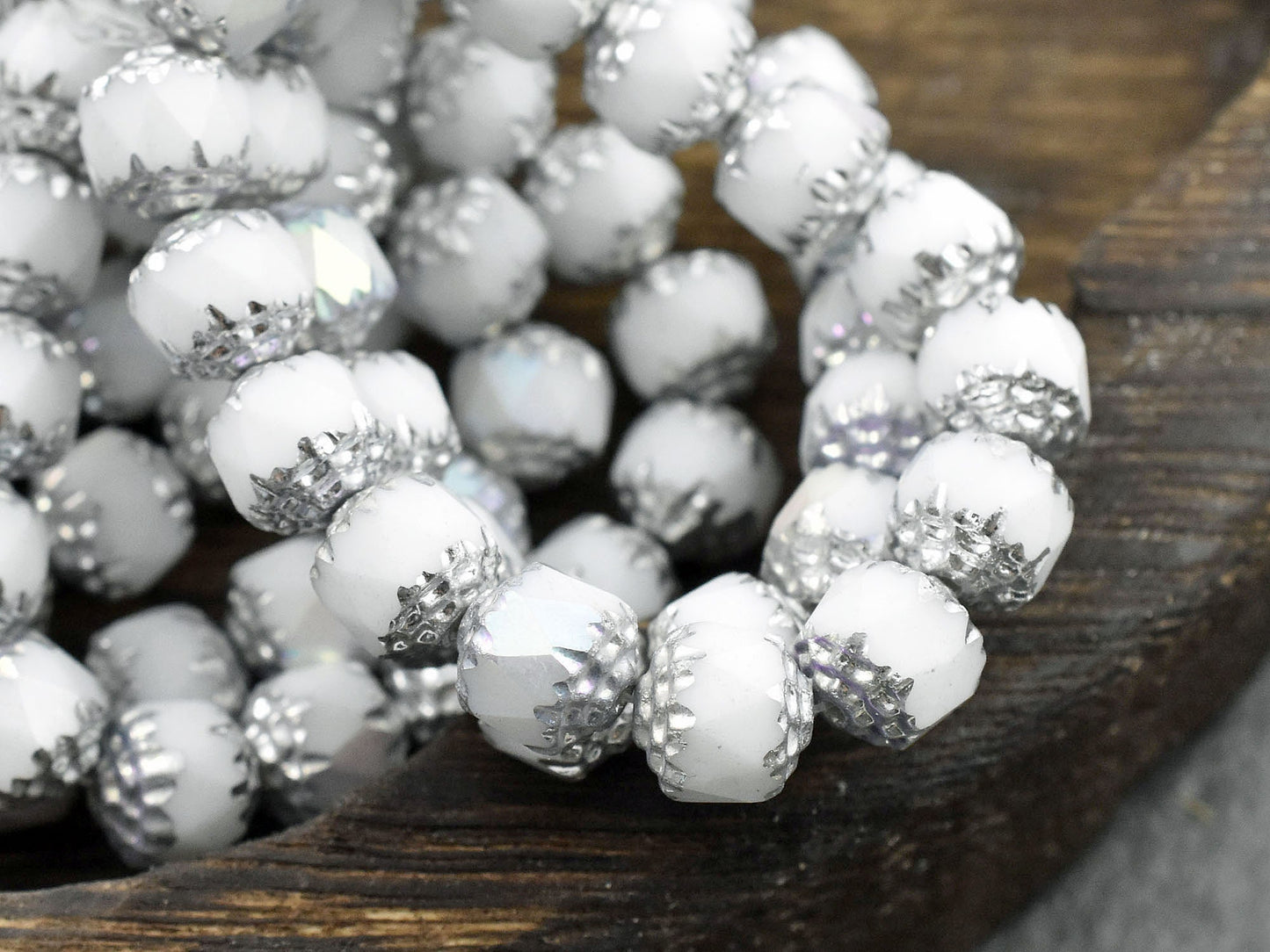 Silver Washed White AB Luster Cathedral Beads - Choose Your Size