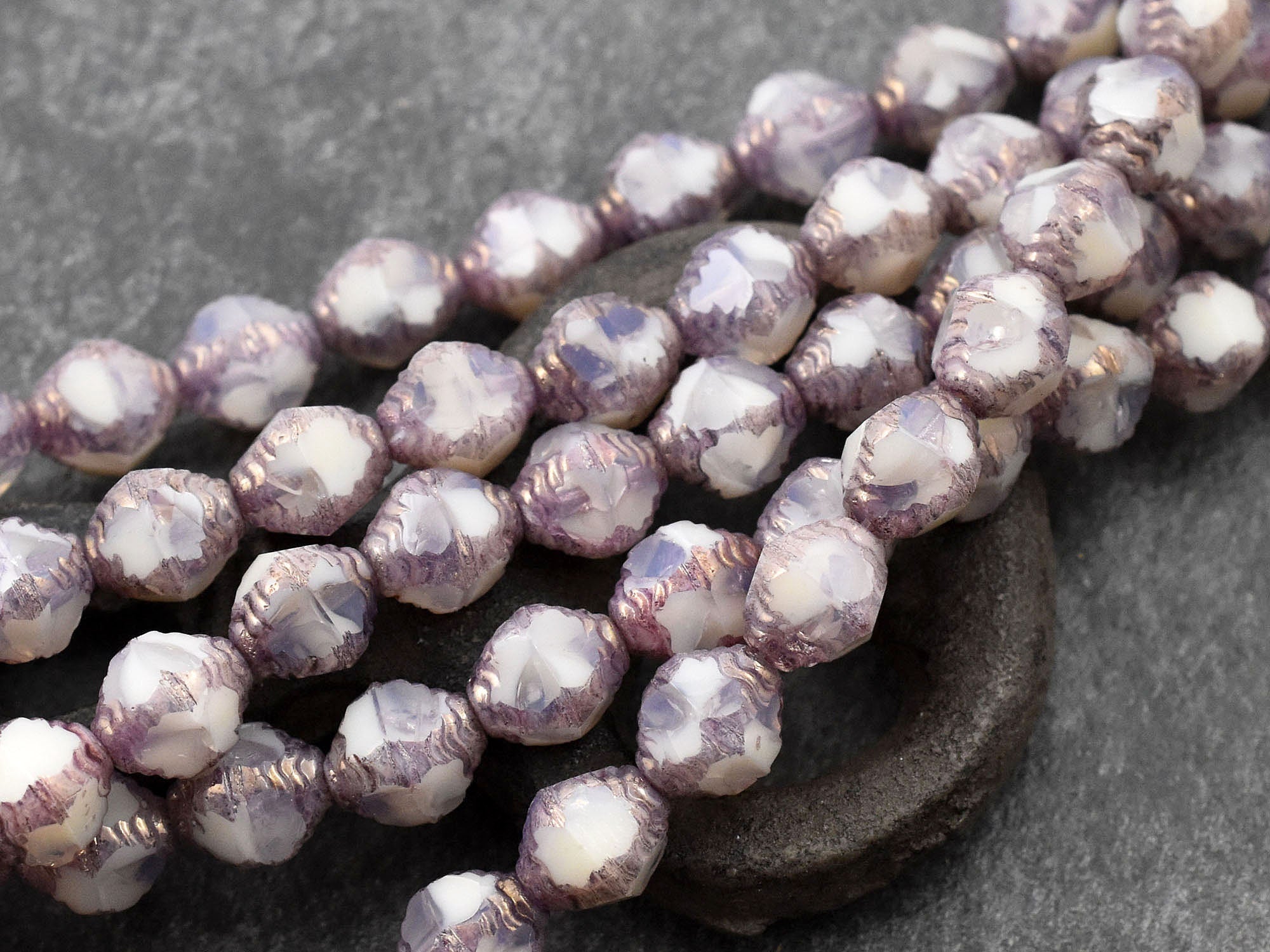*15* 8x10mm Bronze Washed Alabaster Opal Faceted Bicone Beads