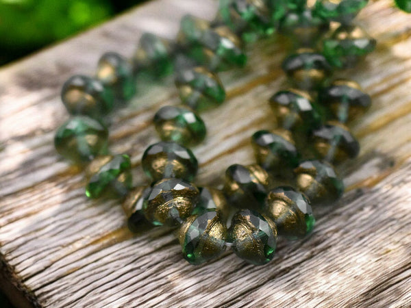 *15* 8x10mm Bronze Washed Etched Emerald Saturn Beads