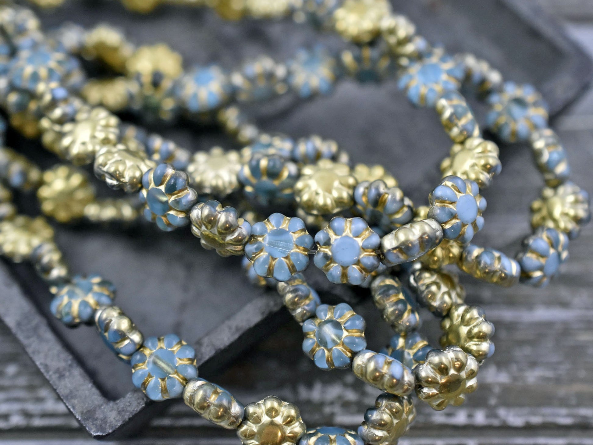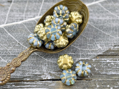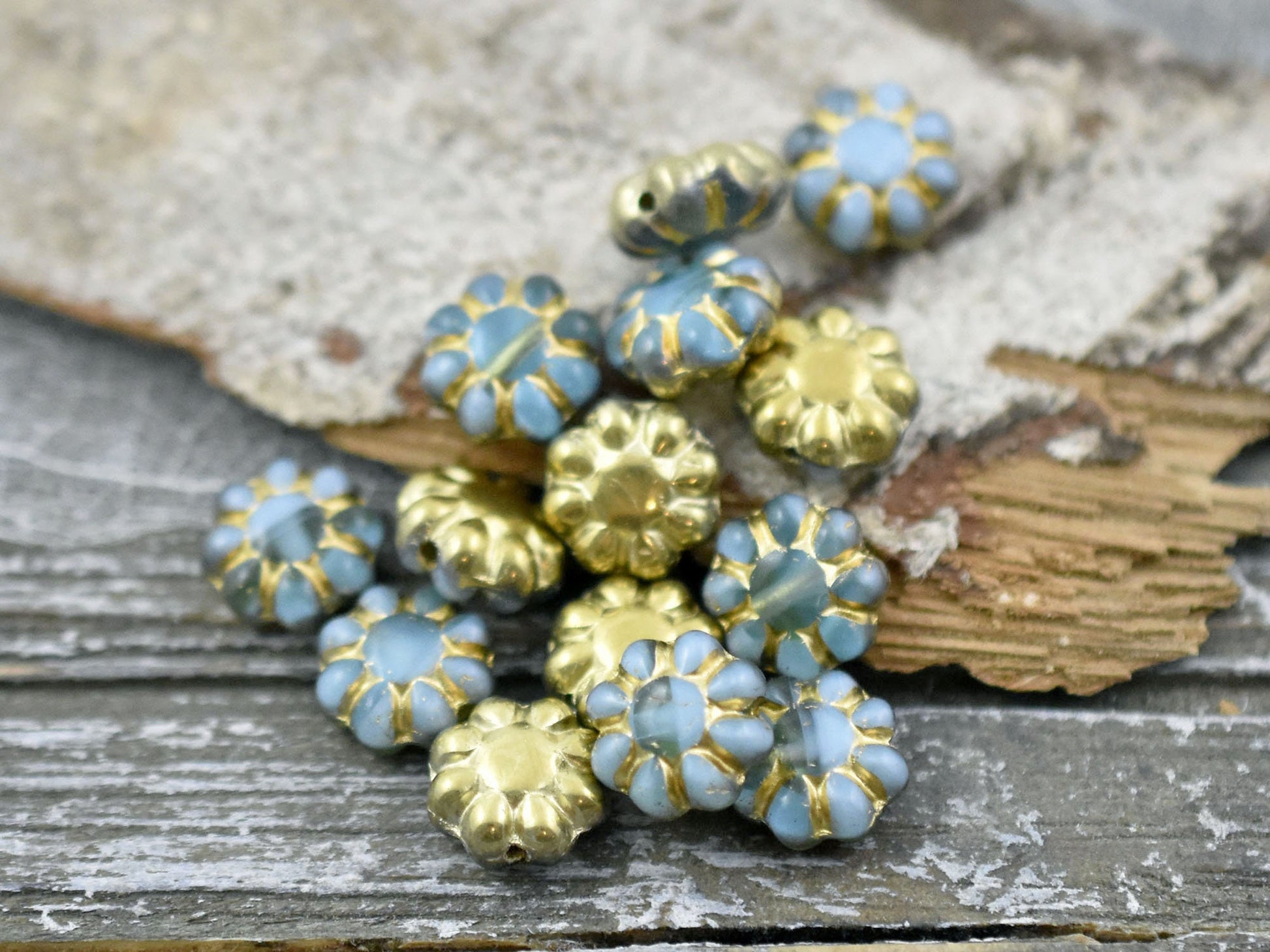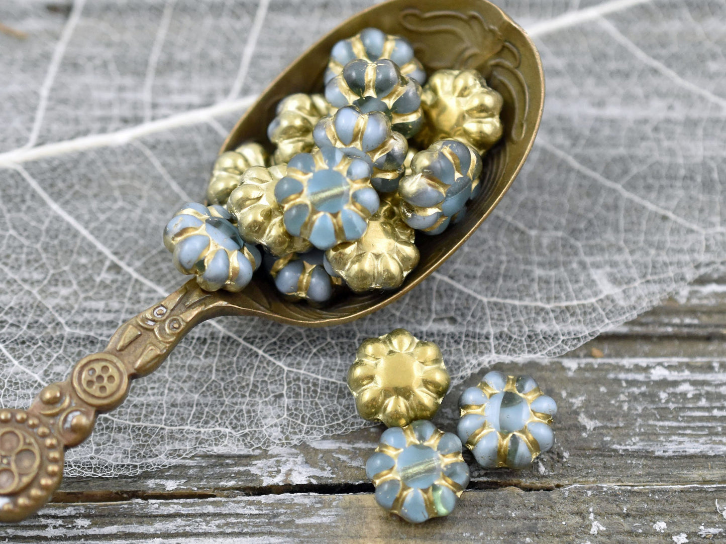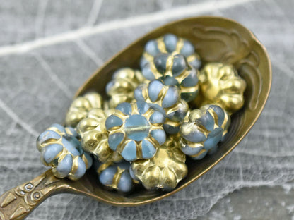 *25* 9mm Gold Washed Sky Blue Cactus Flower Beads