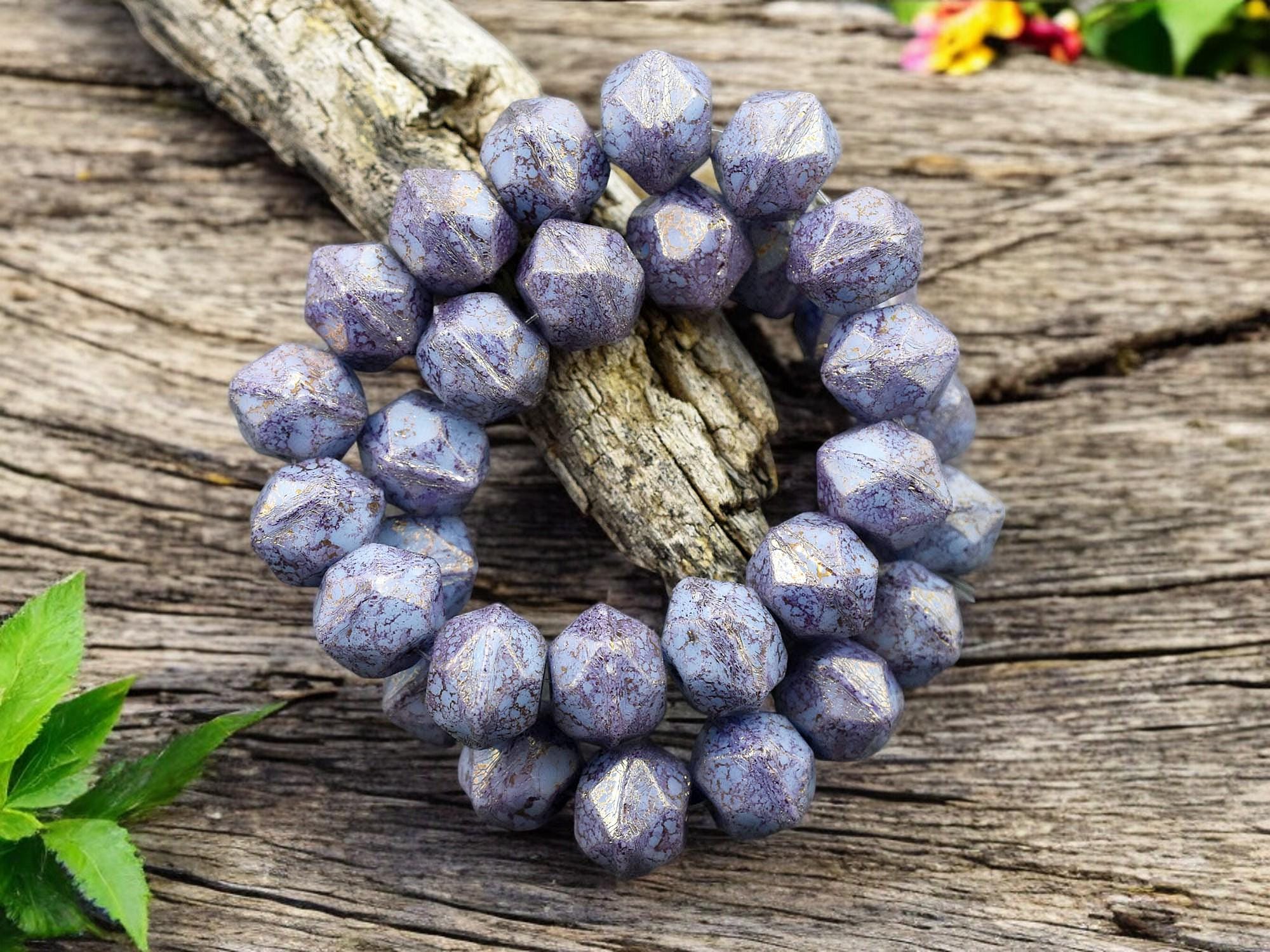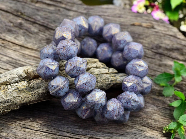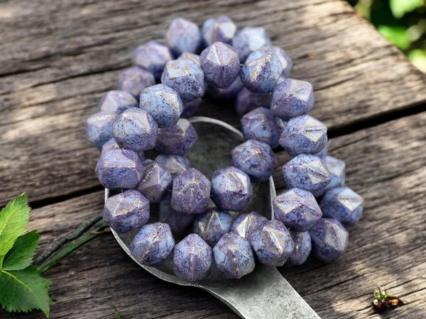*15* 9x10mm Purple Washed Opaqaue Periwinkle Antique Cut Round Beads
