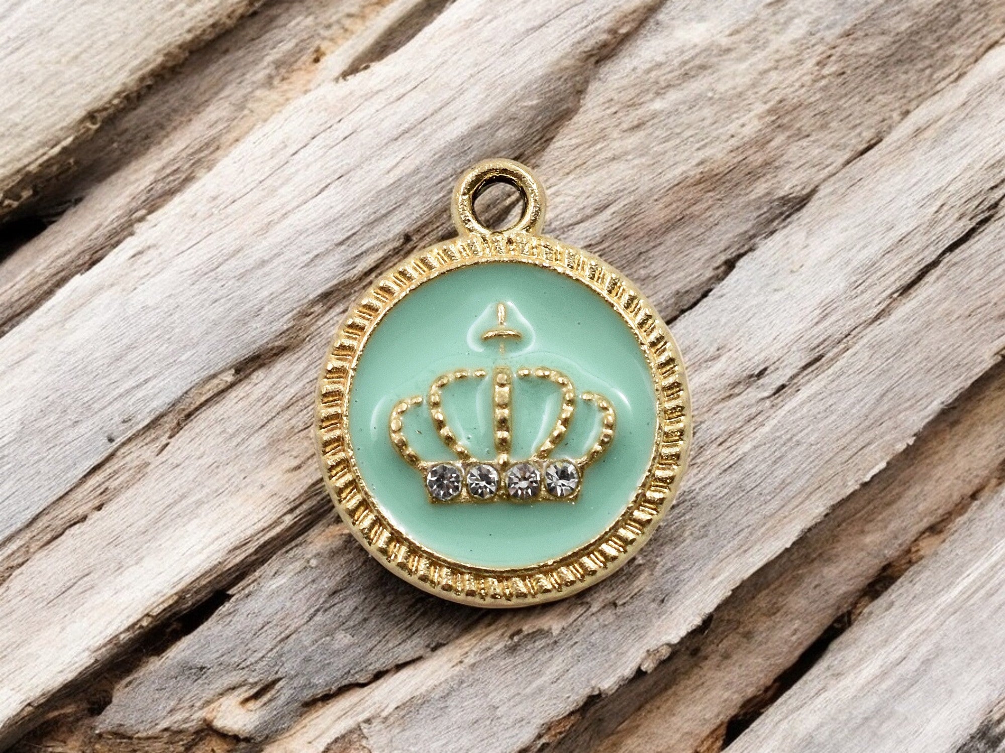 16x19mm Gold Plated Enamel Rhinestone Crown Charms -- Choose Your Color