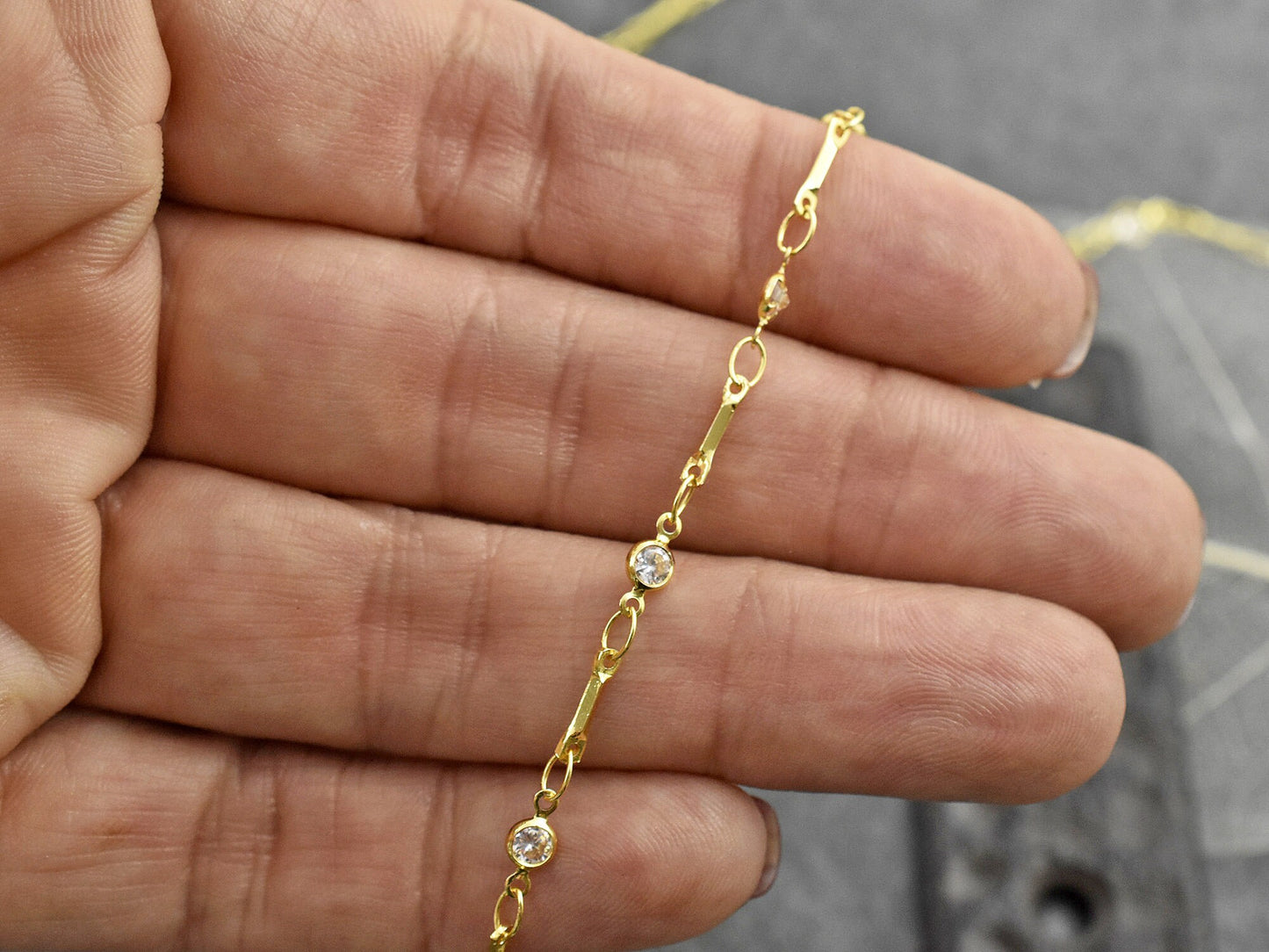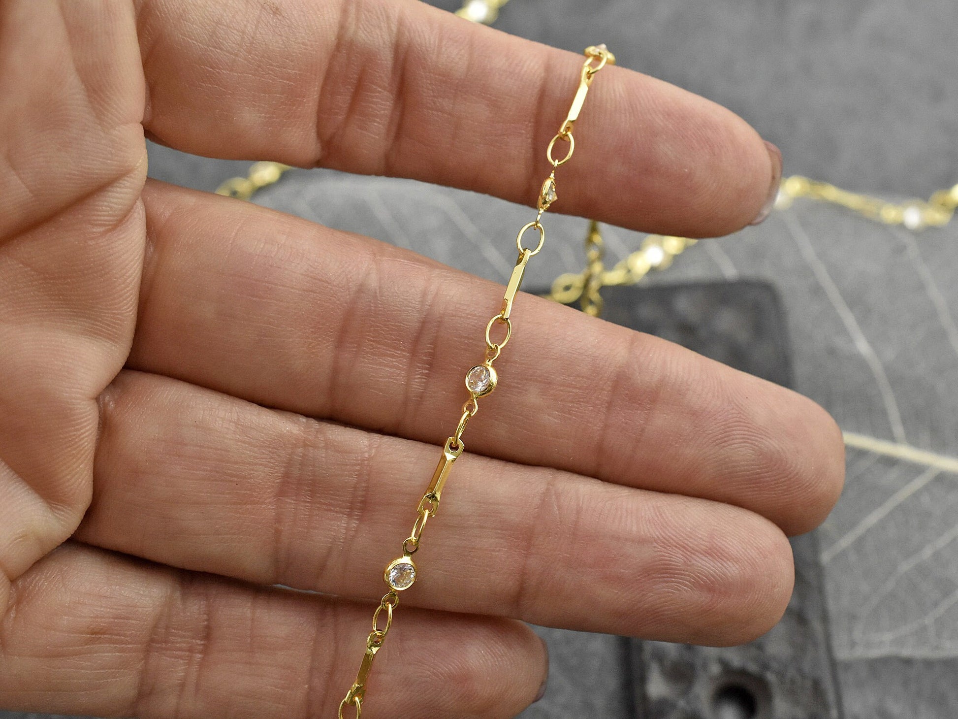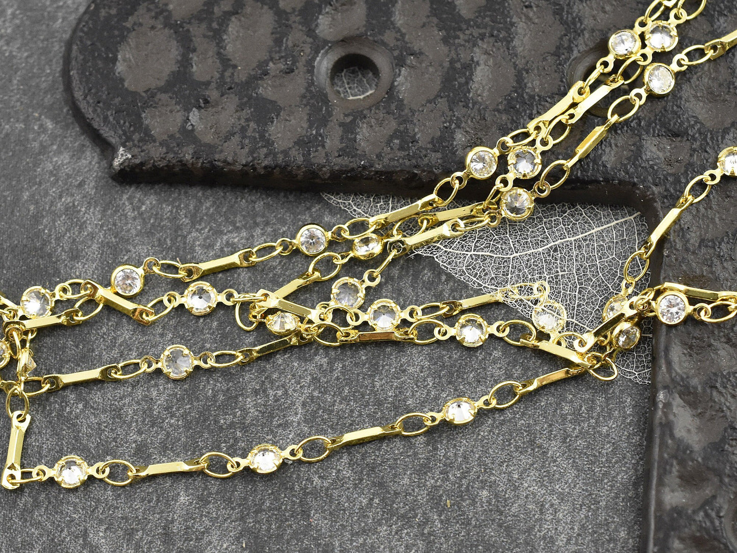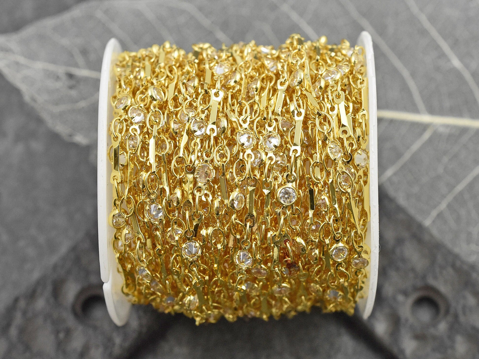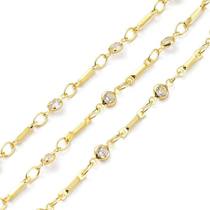 18K Gold Plated Brass Bar Link Rhinestone Chain 8x4x2mm