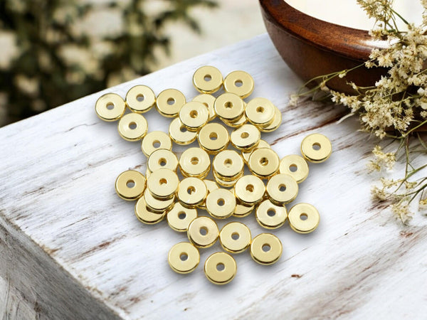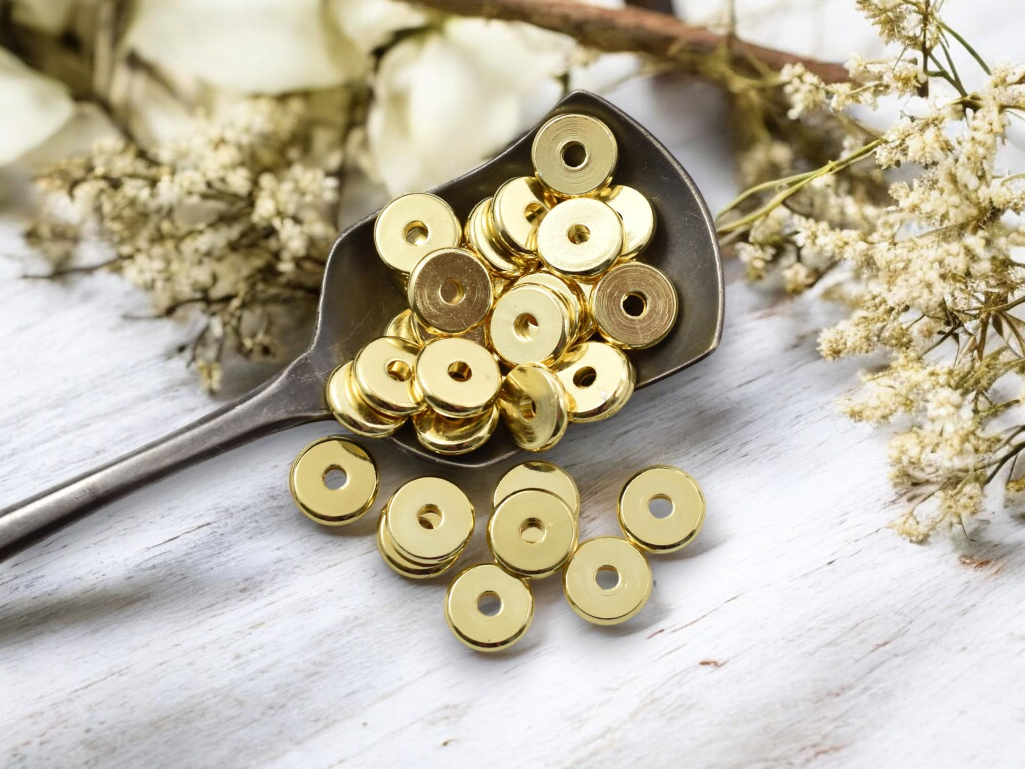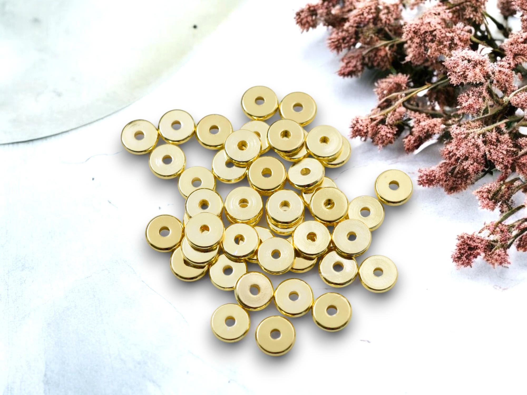 *50* 7mm Long Lasting 18k Gold Plated Brass Heishi Disc Beads