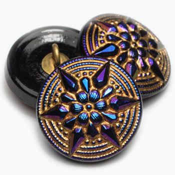 18mm Star Button Indigo with a Gold Wash - Czech Glass Buttons