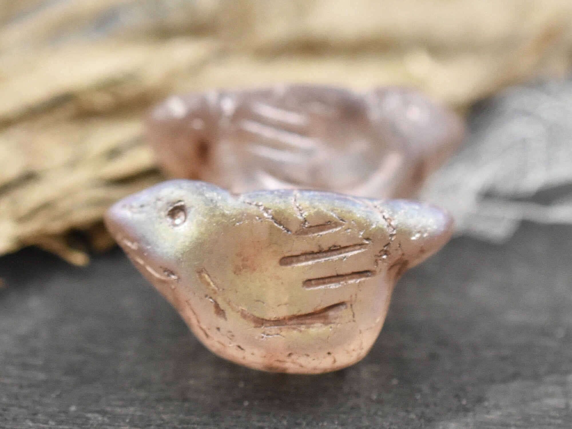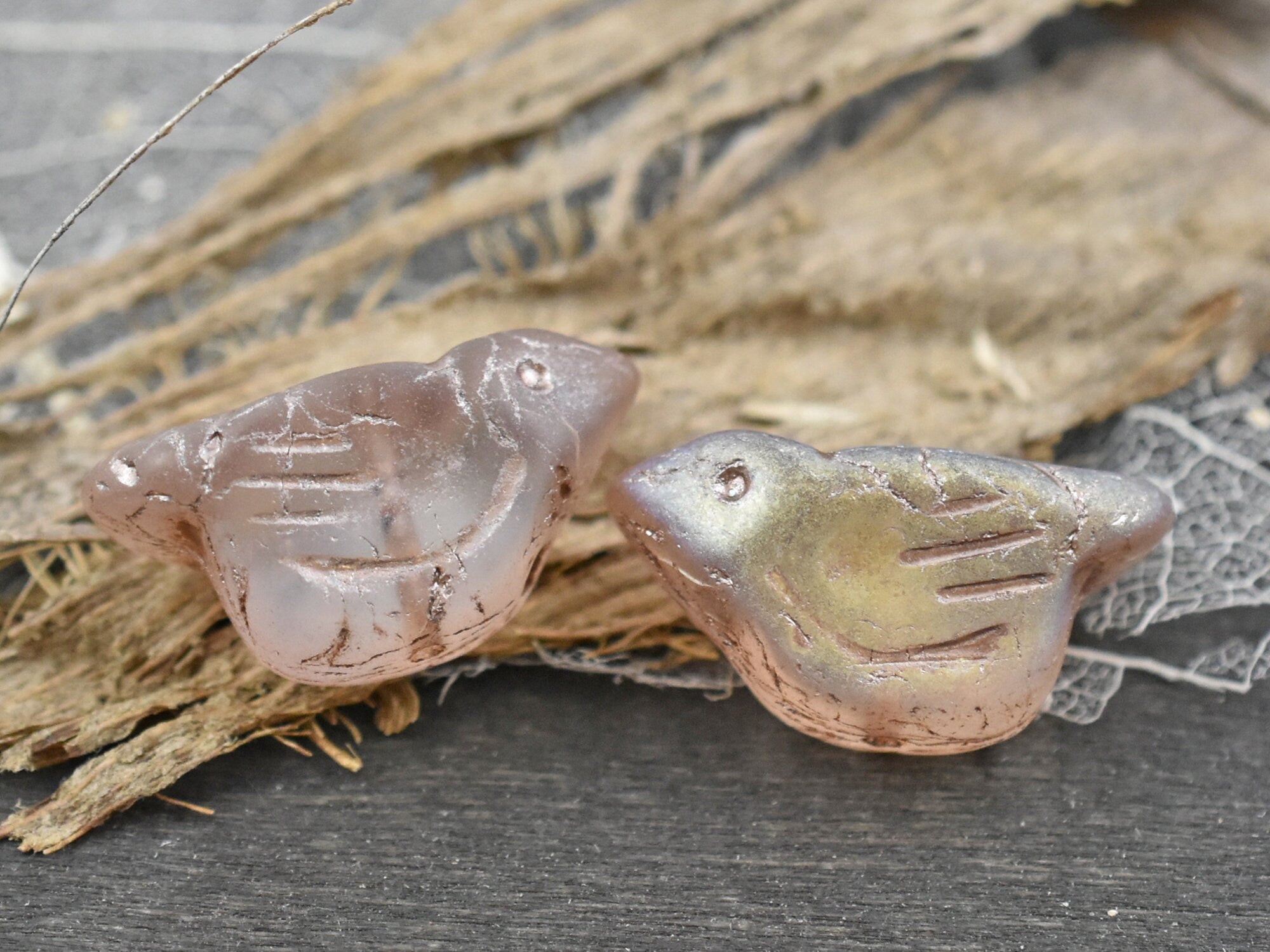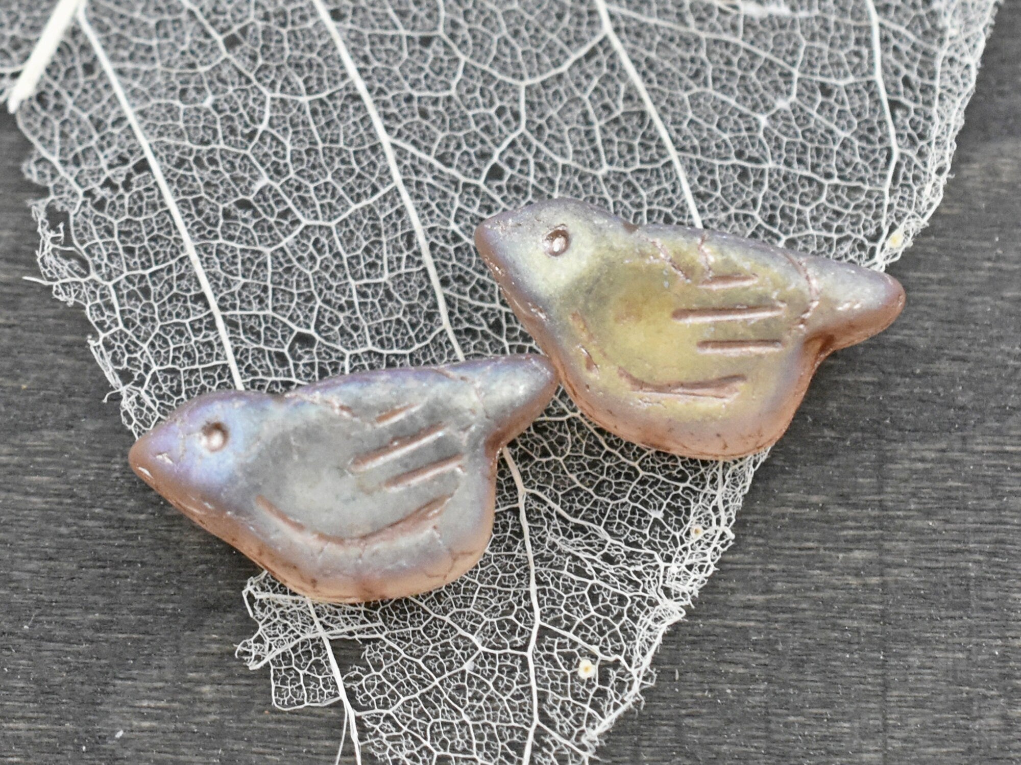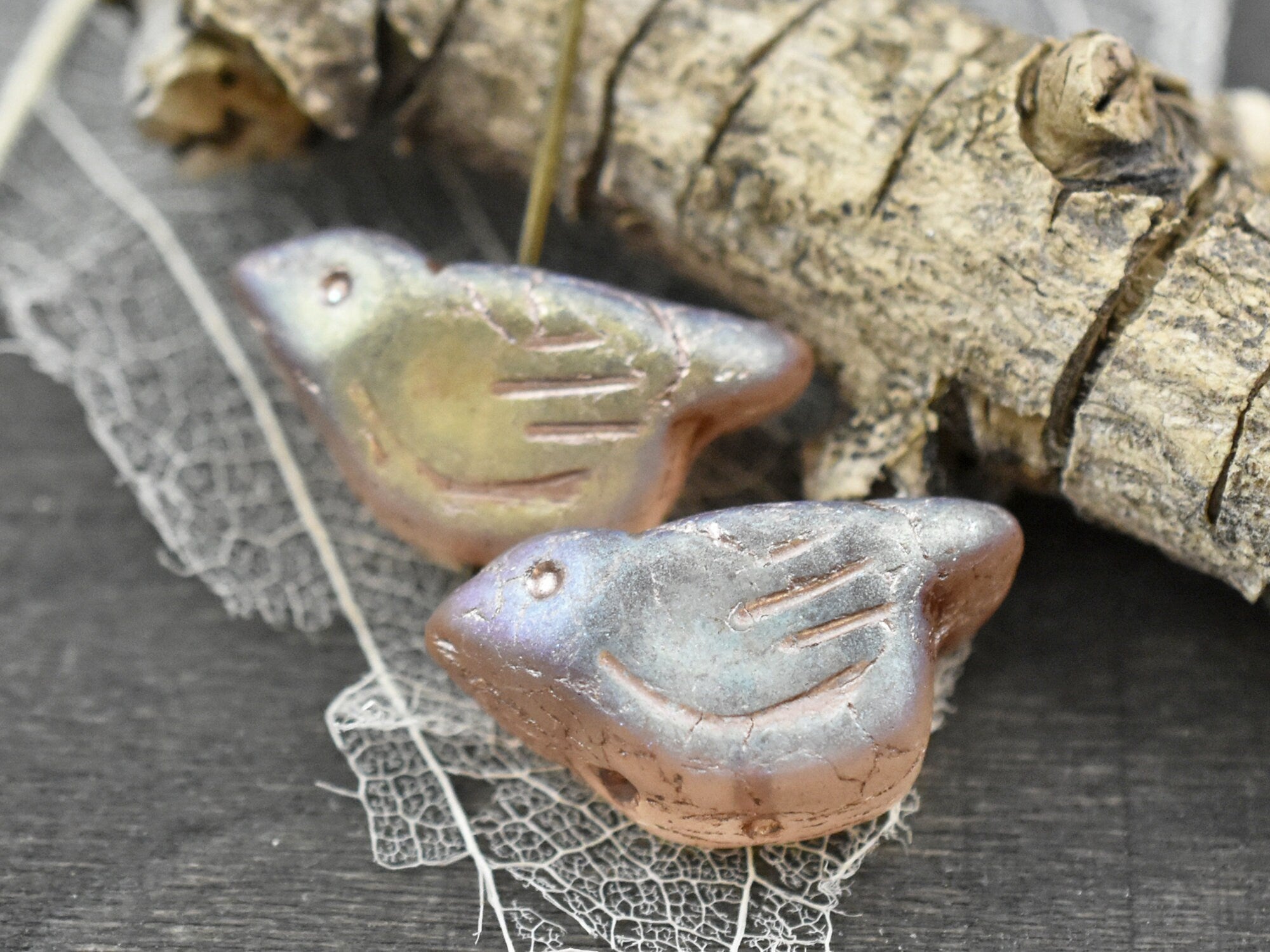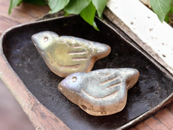 *6* 11x22mm Platinum Washed Matte Crystal AB Bird Beads
