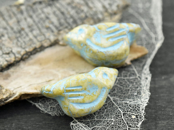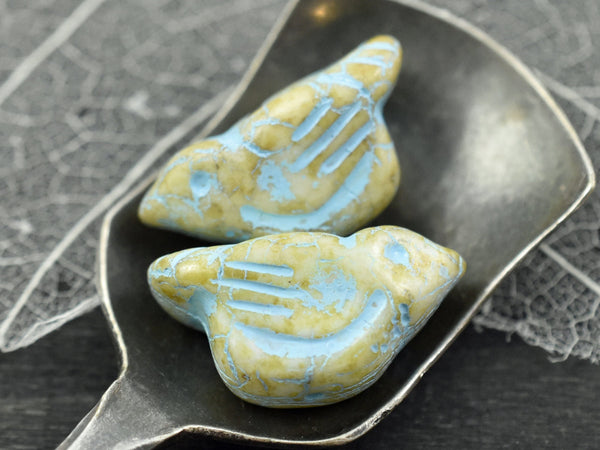 *6* 11x22mm Turquoise Washed Honey Beige Picasso Bird Beads
