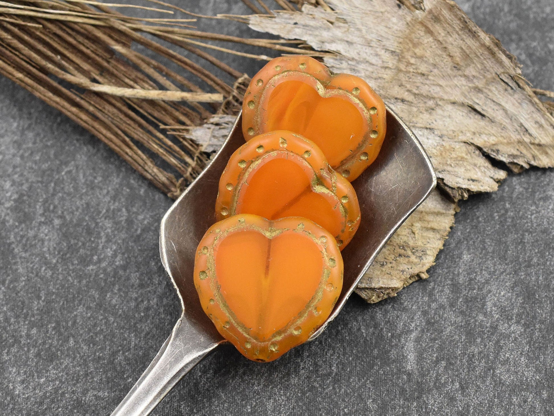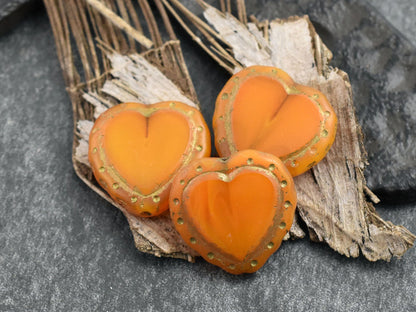 *2* 18mm Dark Bronze Washed Tangarine Opal Heart Beads