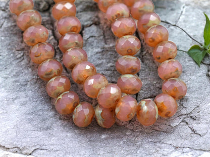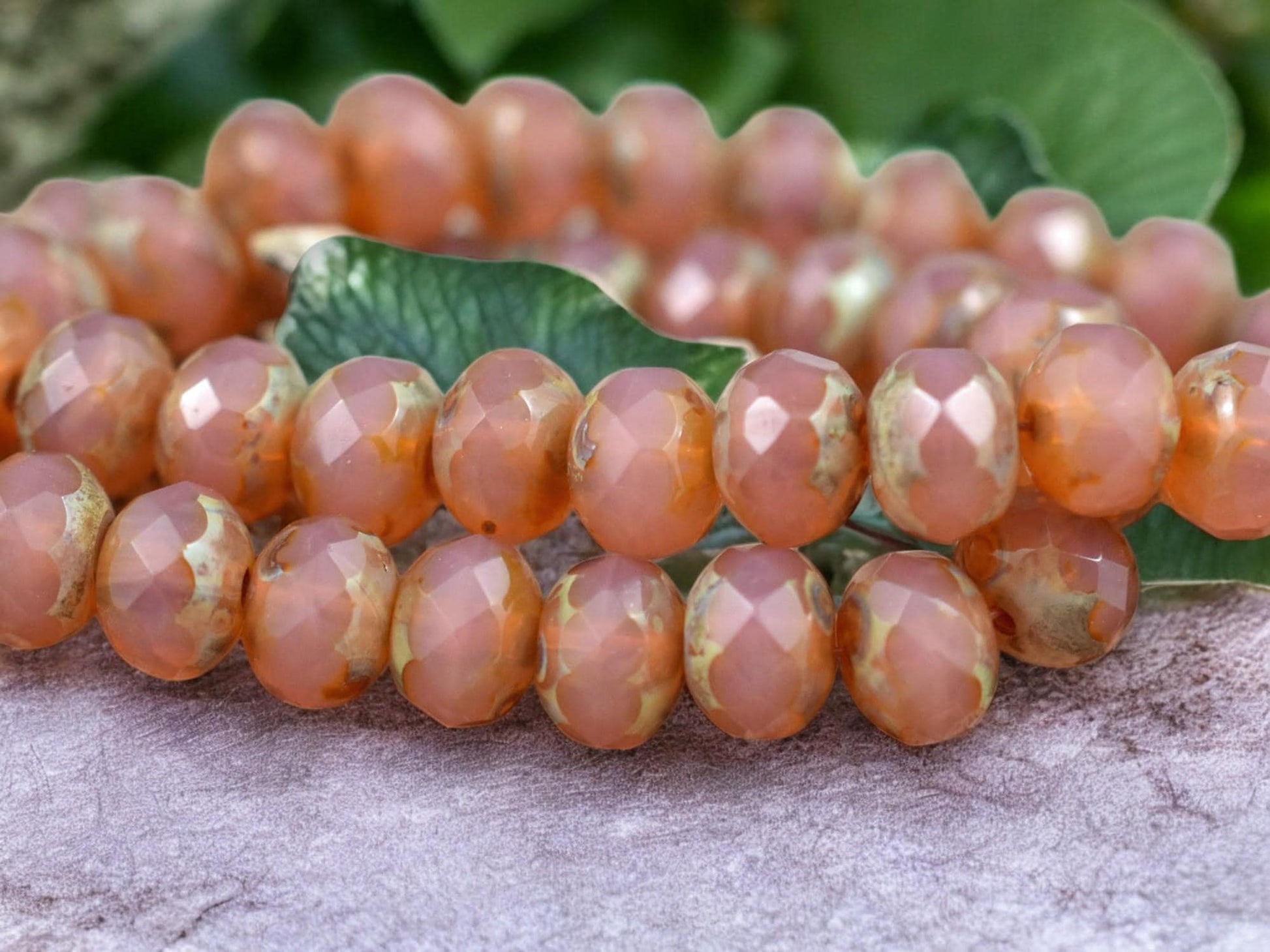 *25* 6x8mm Pink Opaline Picasso Fire Polished Rondelle Beads