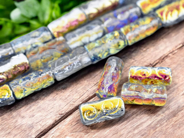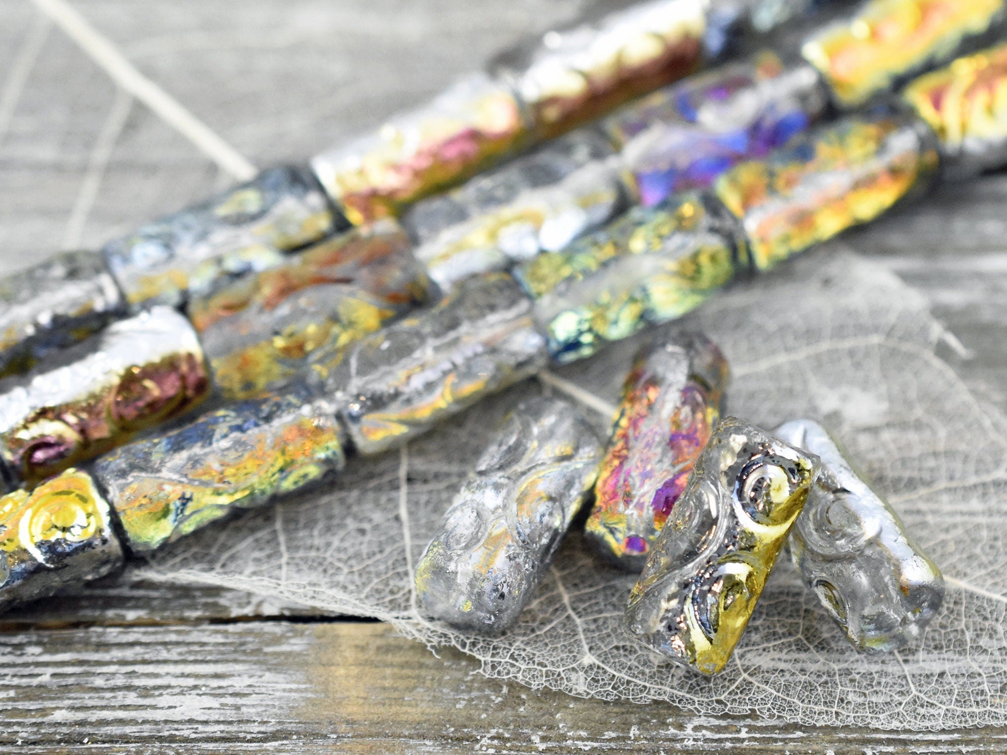 *4* 18x9mm Crystal Vitrail Squiggle Design Barrel Beads