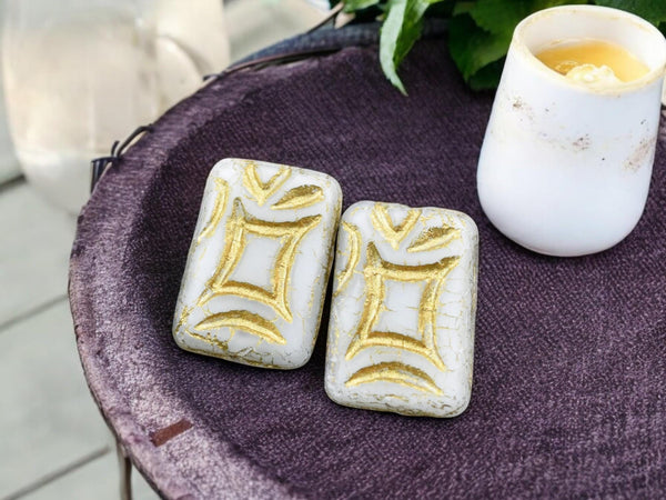 ♥ Type/Shape: Czech pressed glass carved rectangle beads