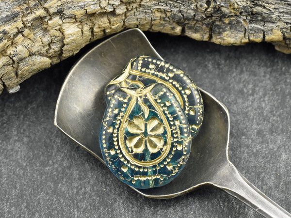 21x18mm Bronze Washed Blue Aqua Lucky Horseshoe Beads