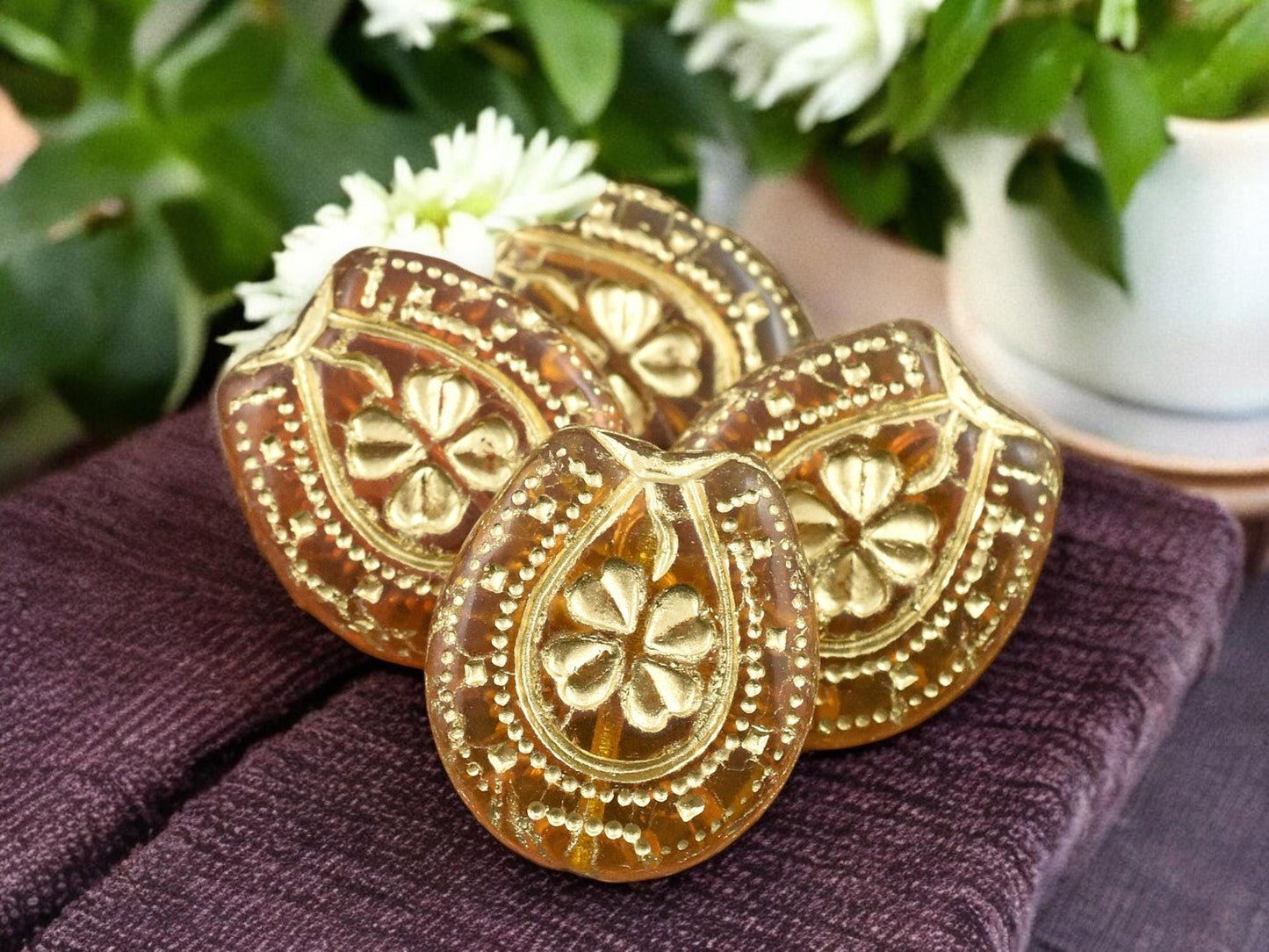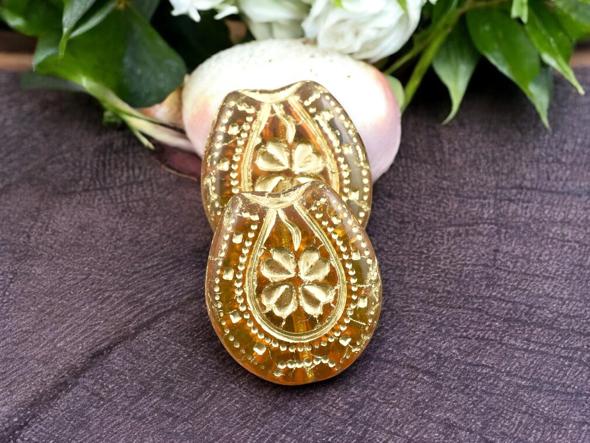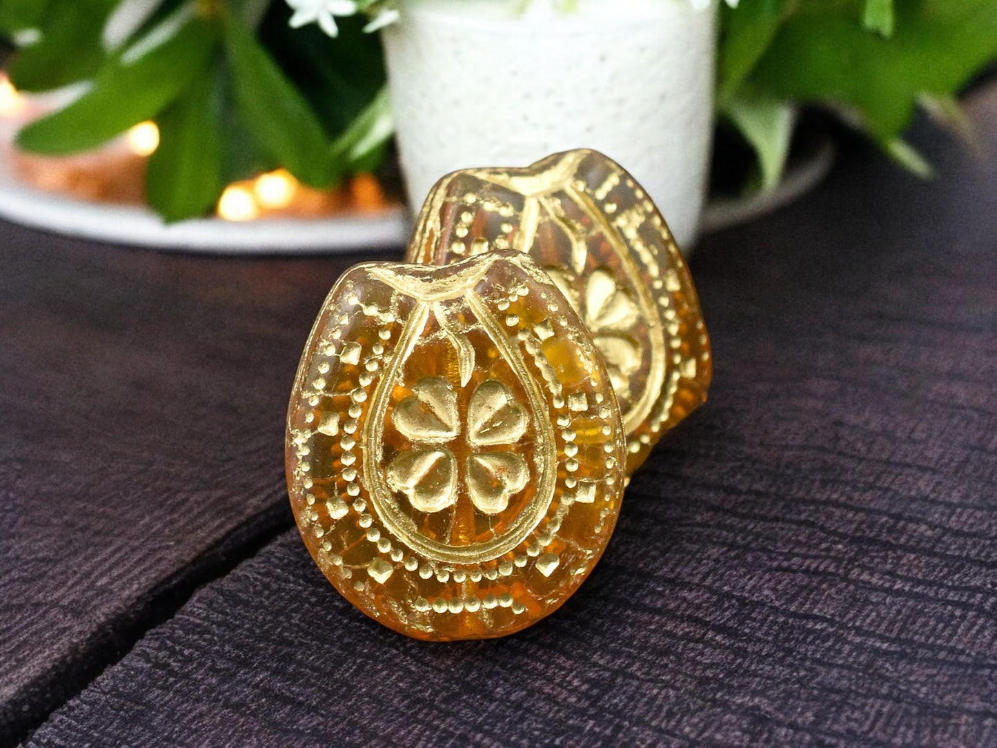 21x18mm Bronze Washed Translucent Orange Topaz Lucky Horseshoe Beads