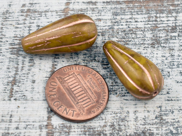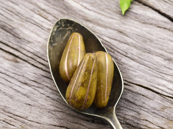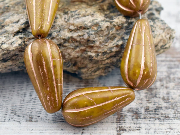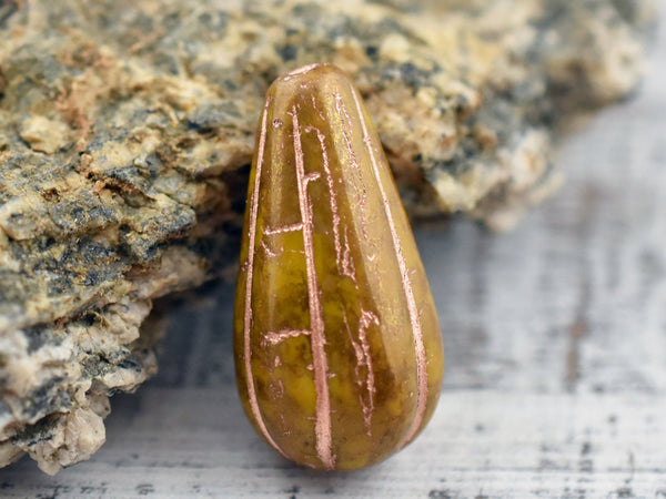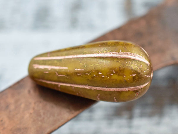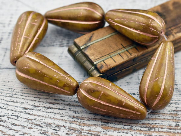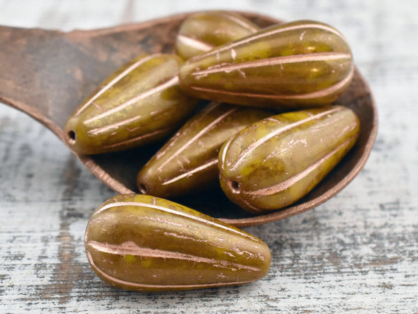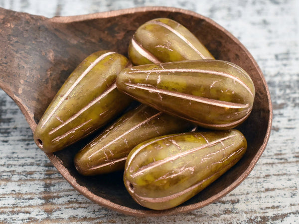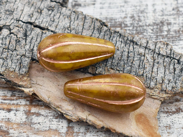 *6* 22x11mm Gold and Copper Washed Spicy Mustard Melon Drop Beads