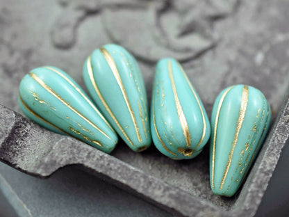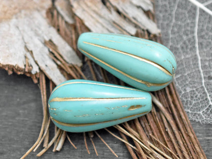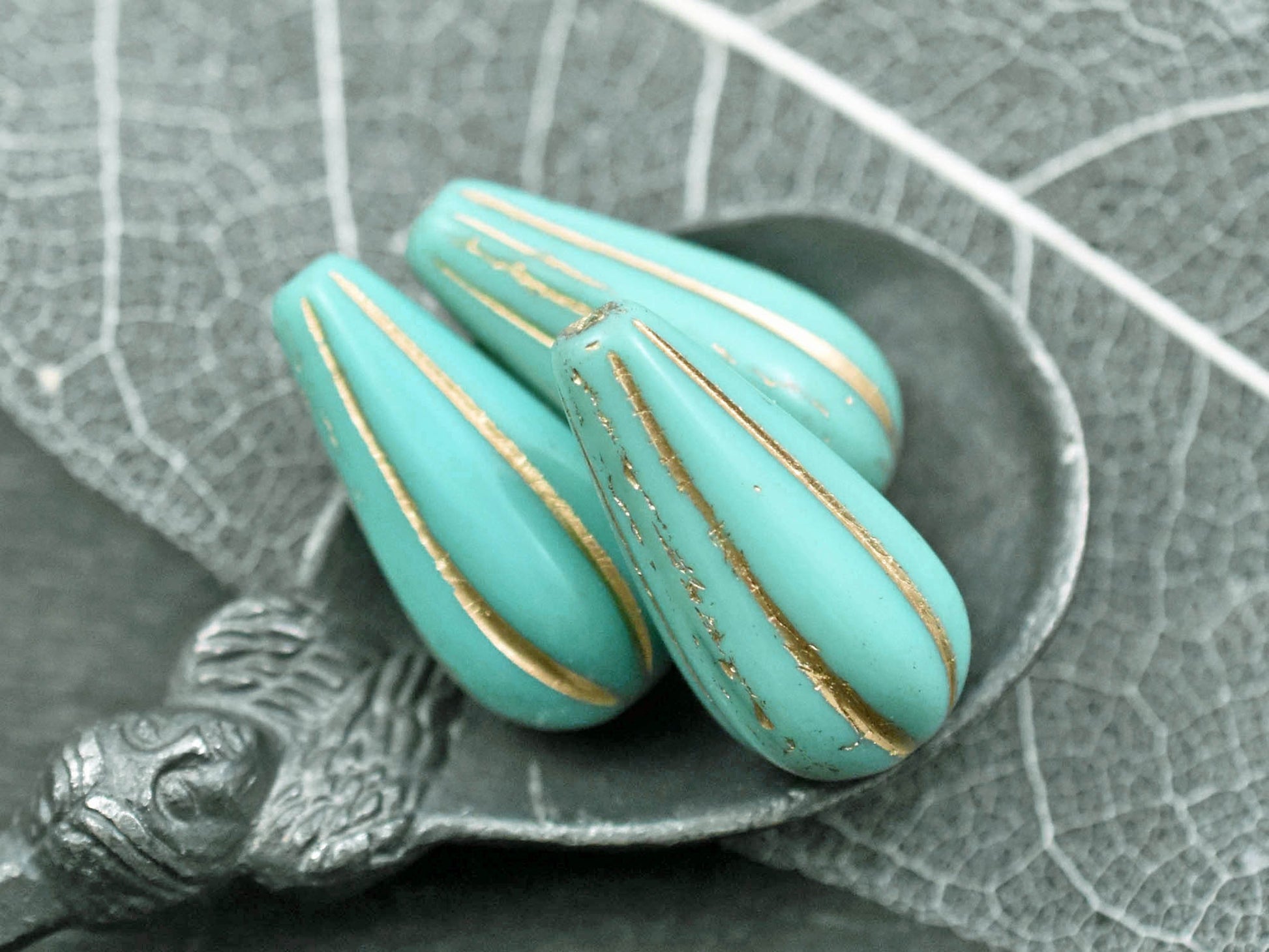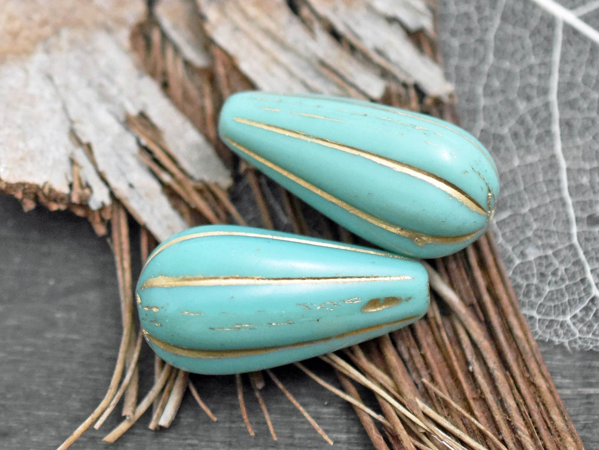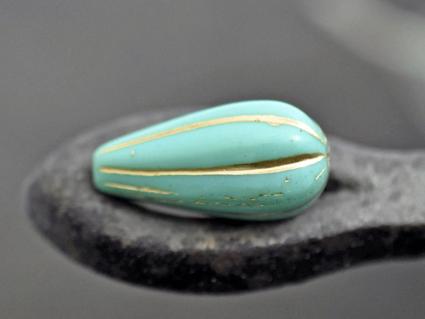 *6* 22x11mm Gold Washed Opaque Turquoise Melon Drop Beads